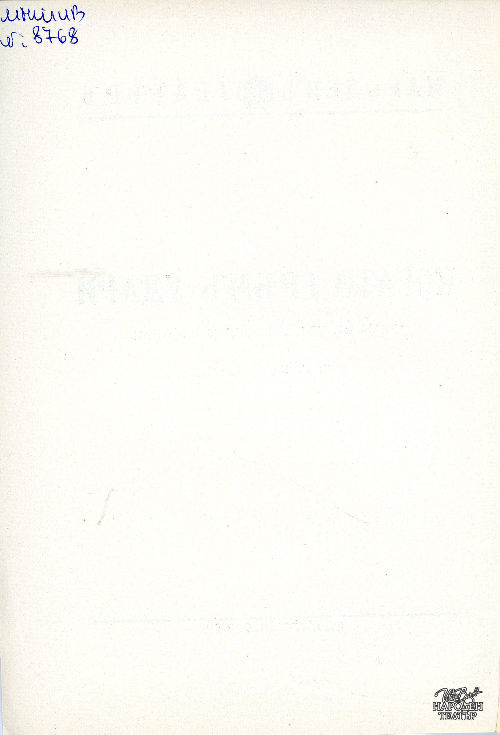 | Институция | Народен театър „Иван Вазов“, гр. София, България |