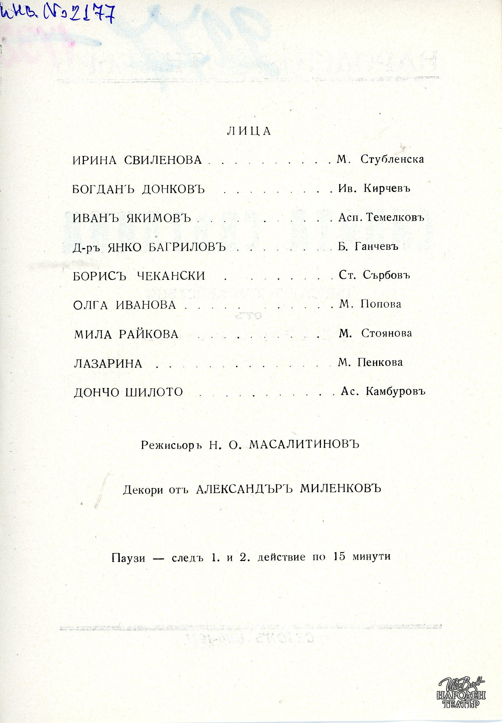 | Институция | Народен театър „Иван Вазов“, гр. София, България |