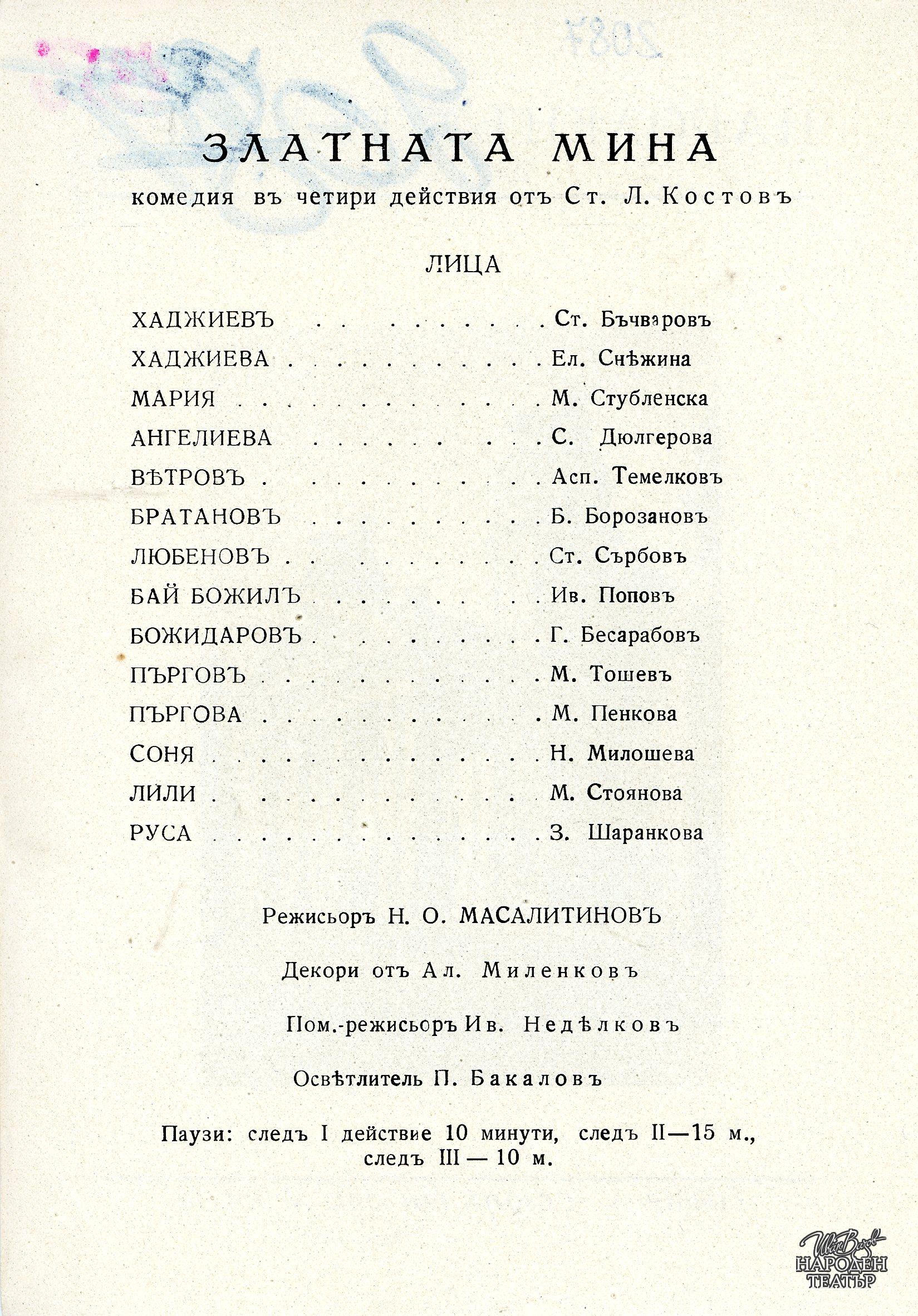 | Институция | Народен театър „Иван Вазов“, гр. София, България |
