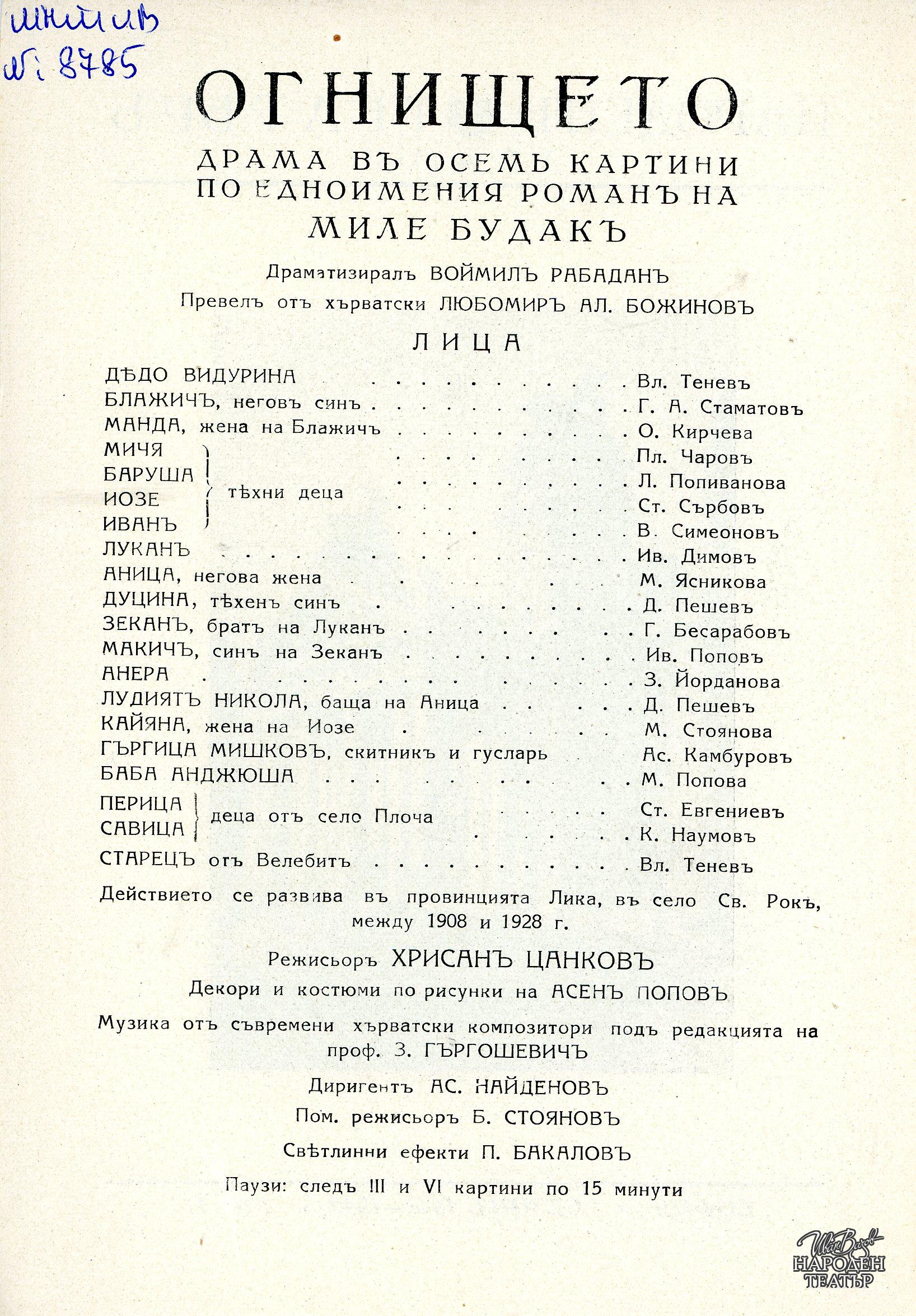 | Институция | Народен театър „Иван Вазов“, гр. София, България |