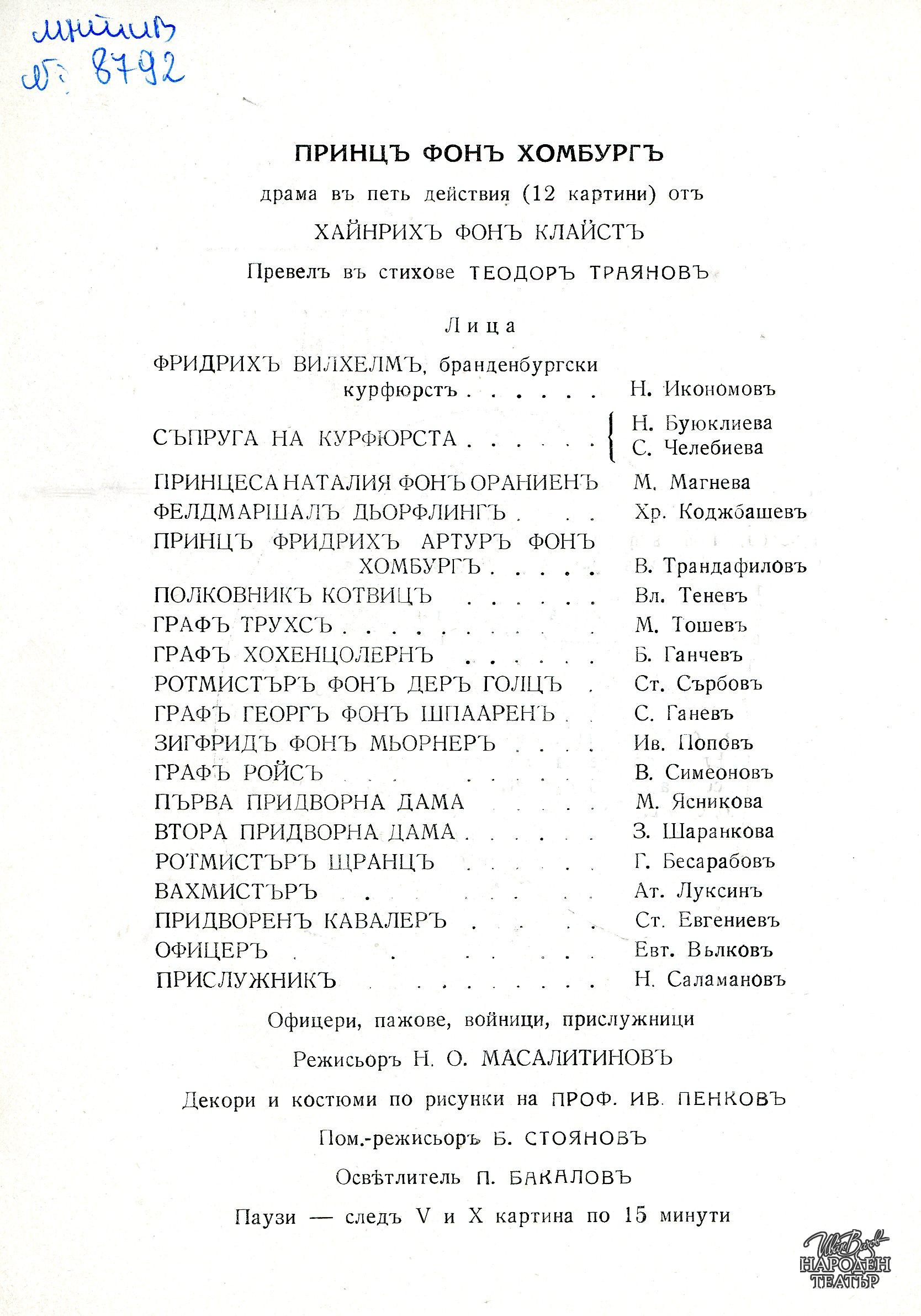 | Институция | Народен театър „Иван Вазов“, гр. София, България |
