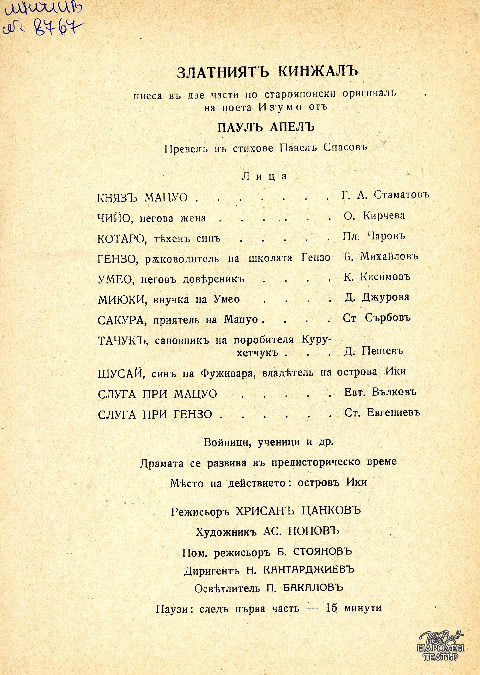 | Институция | Народен театър „Иван Вазов“, гр. София, България |