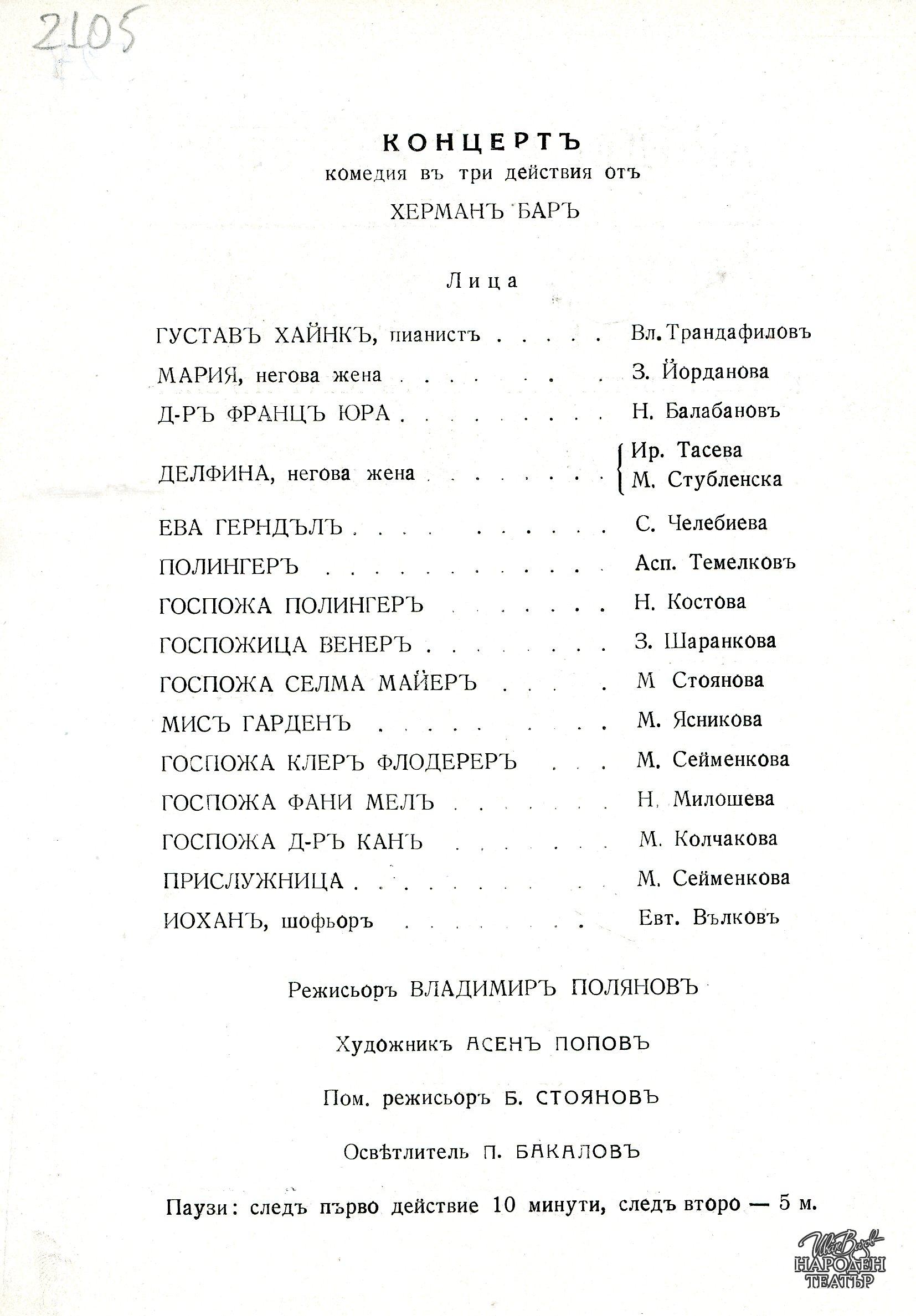 | Институция | Народен театър „Иван Вазов“, гр. София, България |