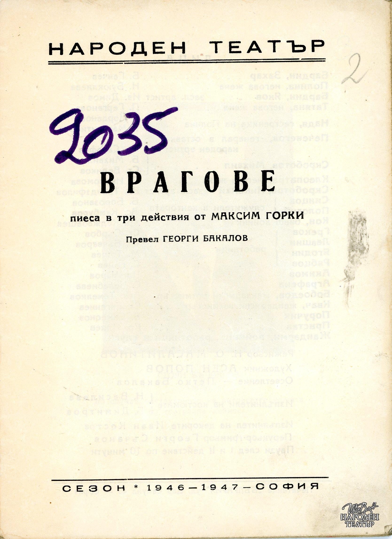 | Институция | Народен театър „Иван Вазов“, гр. София, България |