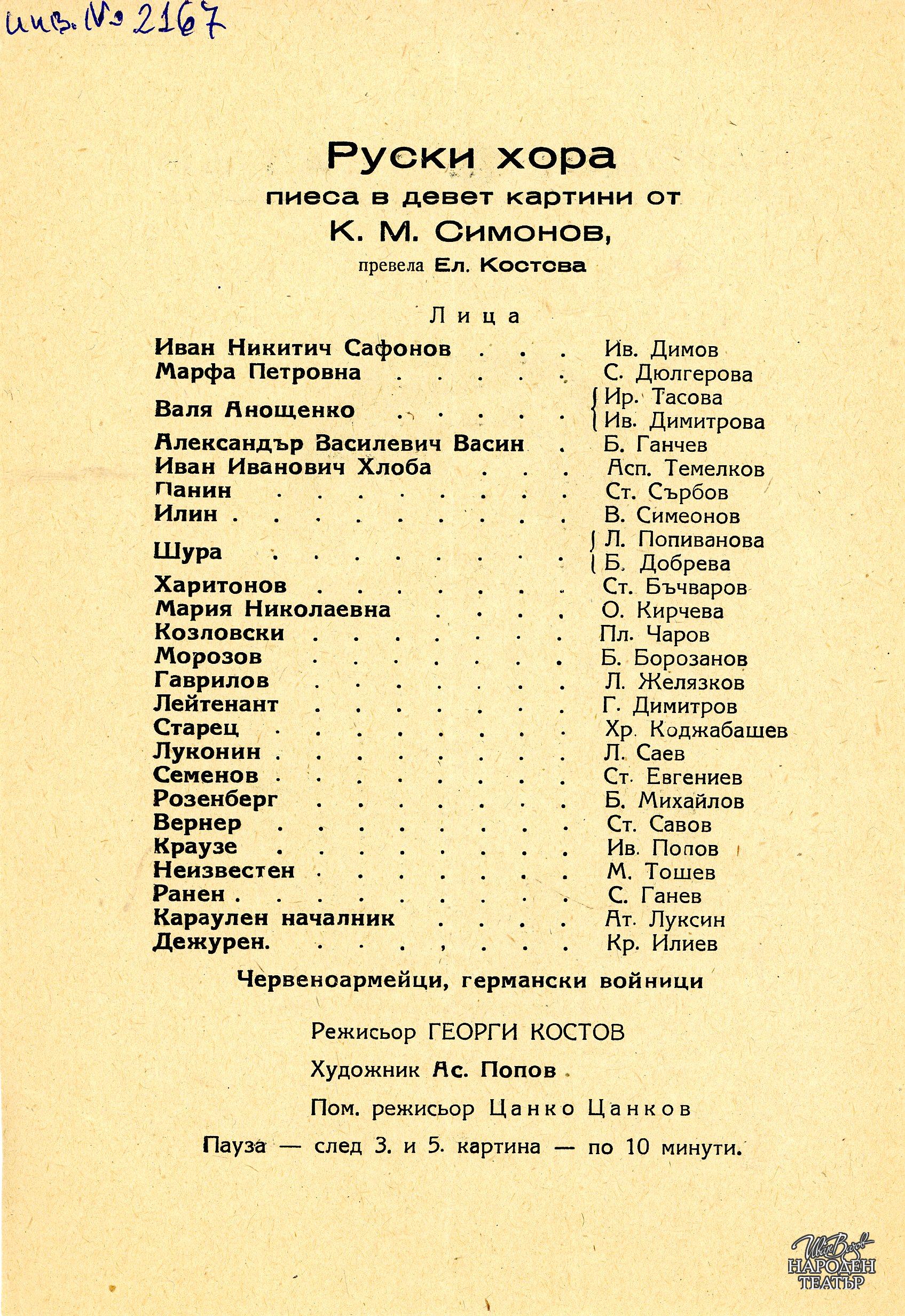 | Институция | Народен театър „Иван Вазов“, гр. София, България |