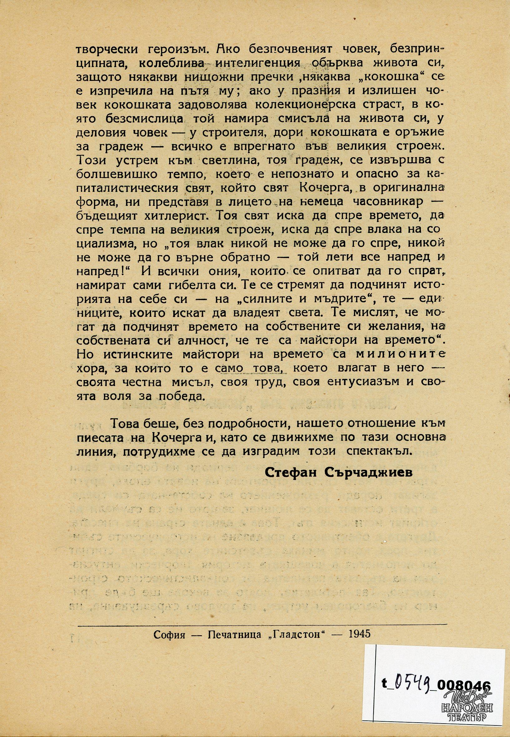 | Институция | Народен театър „Иван Вазов“, гр. София, България |