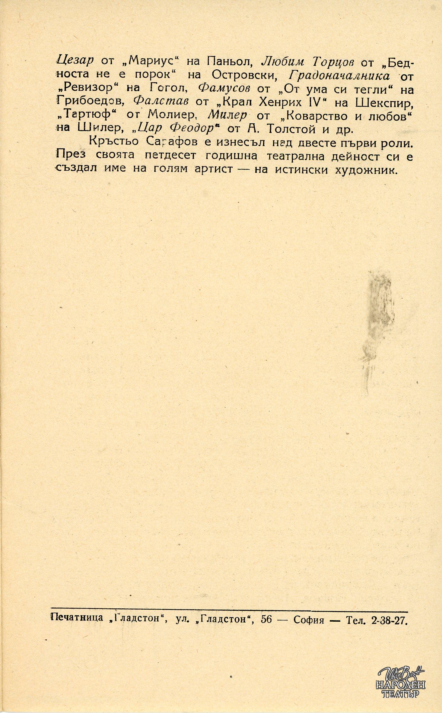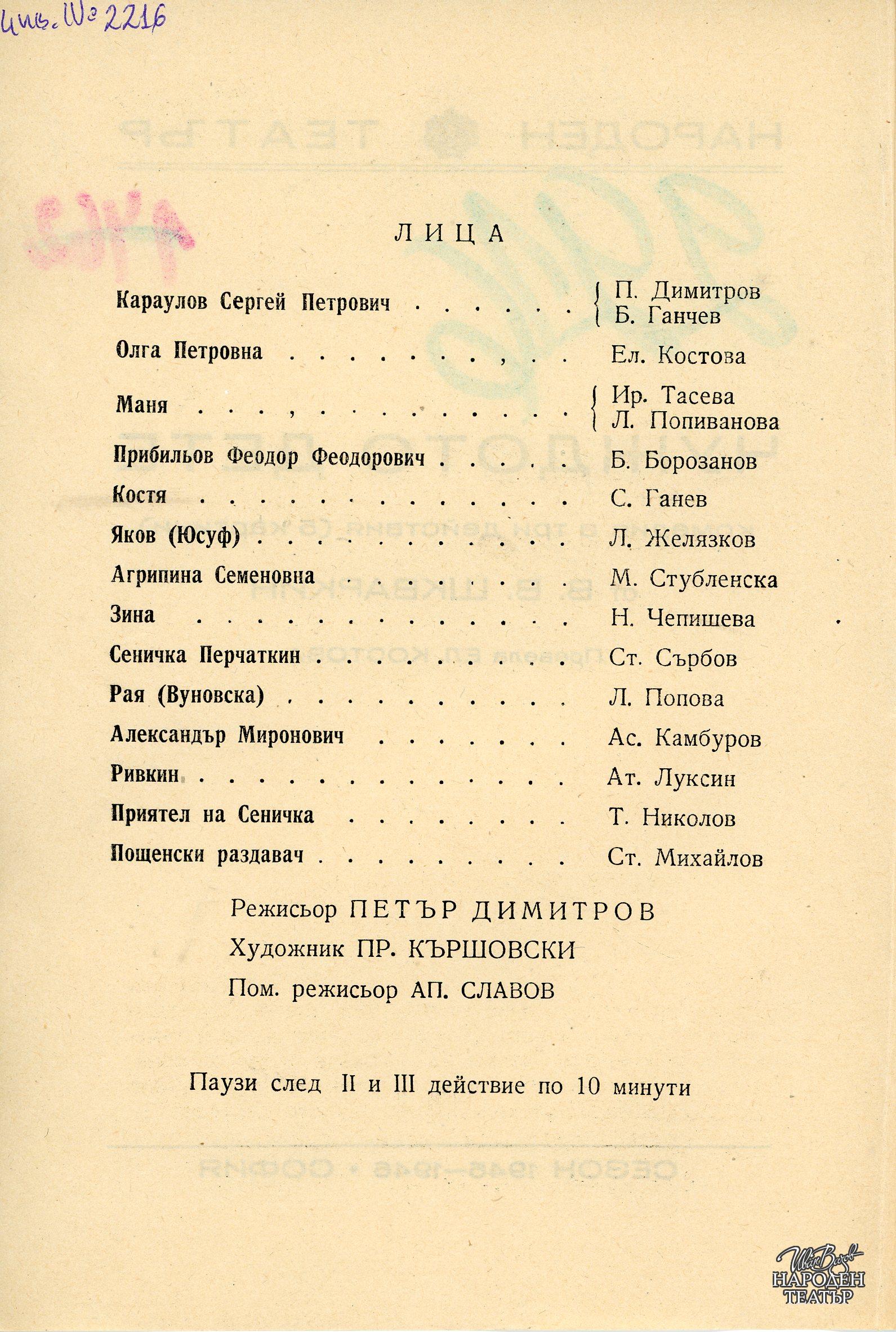 | Институция | Народен театър „Иван Вазов“, гр. София, България |