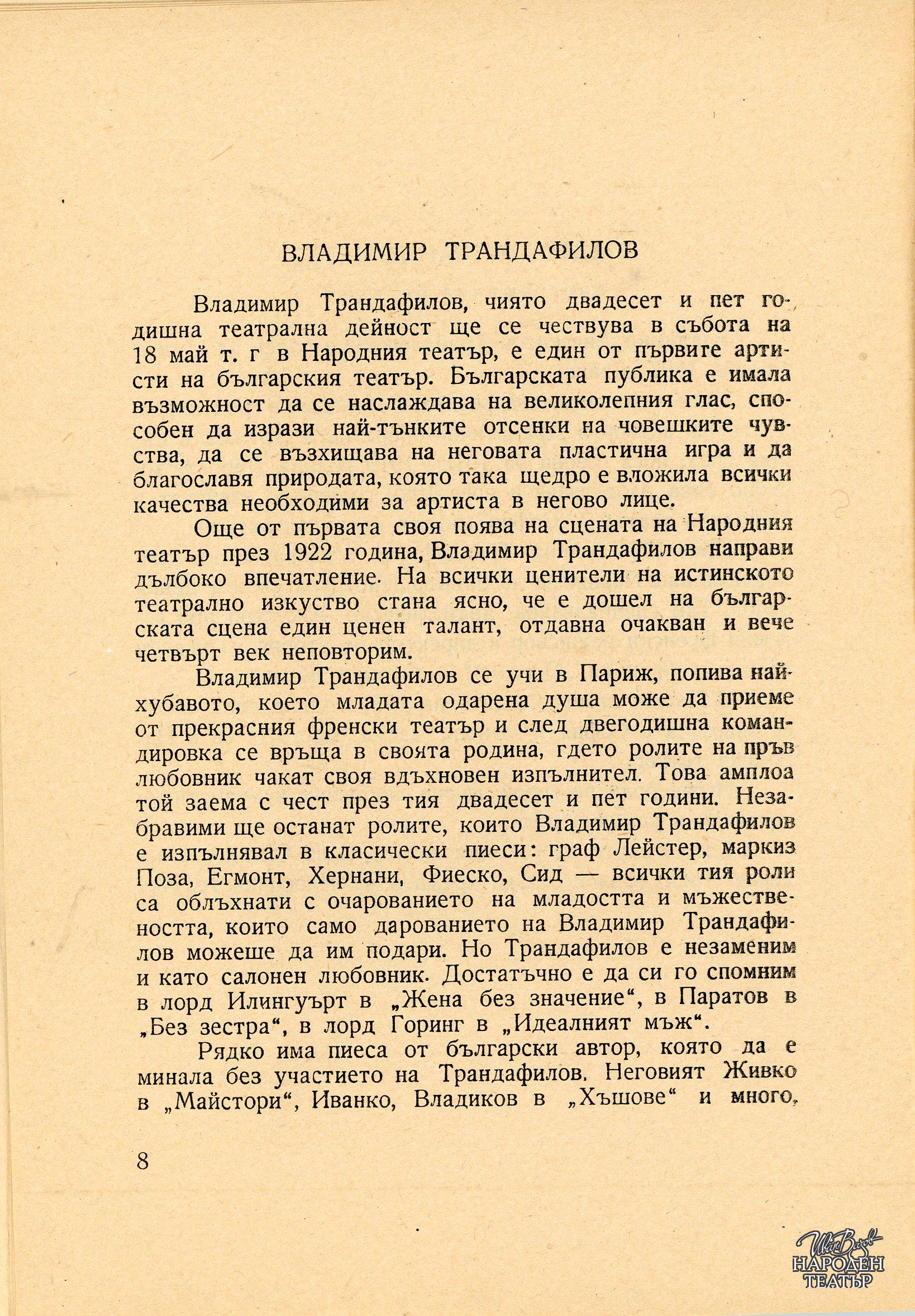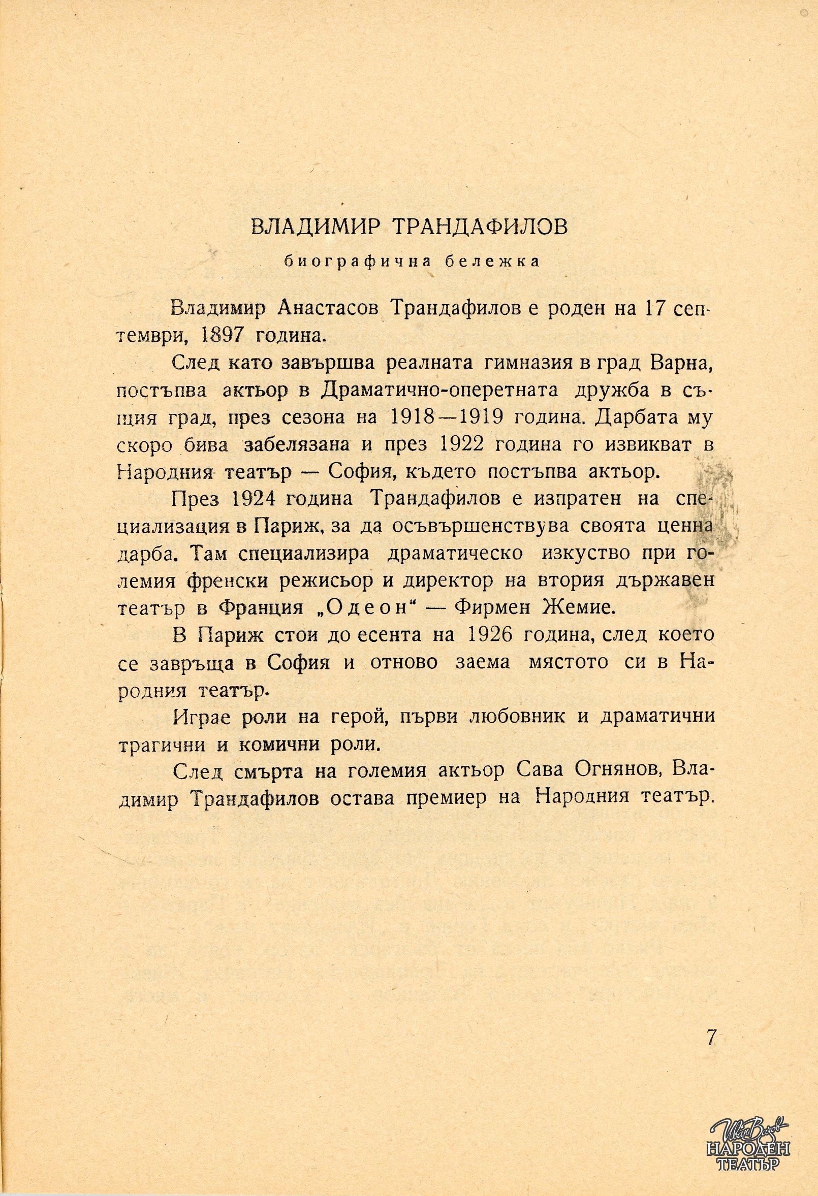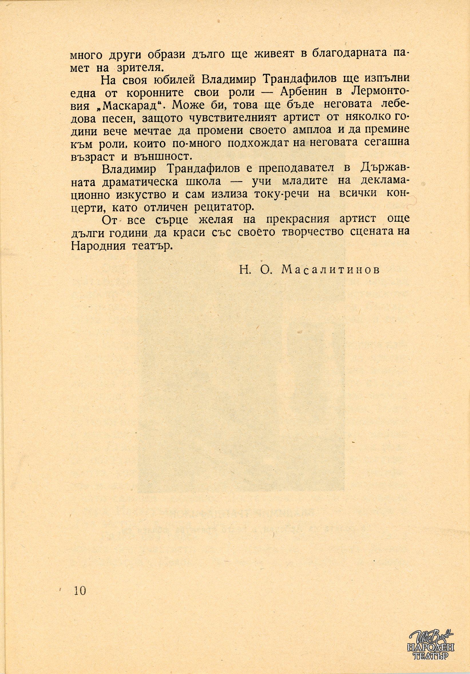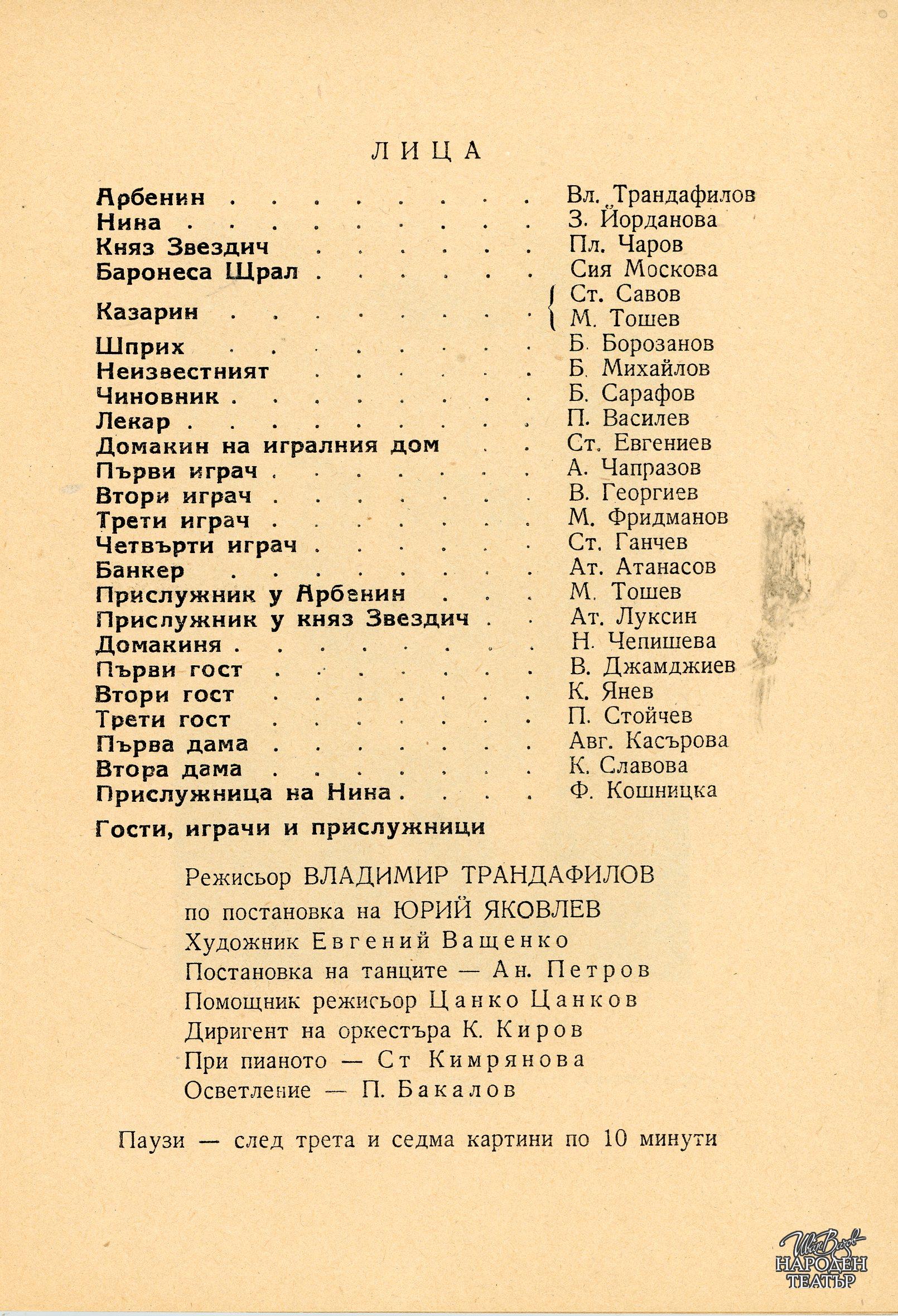 Владимир Трандафилов (по постановката на Юрий Яковлев) |
