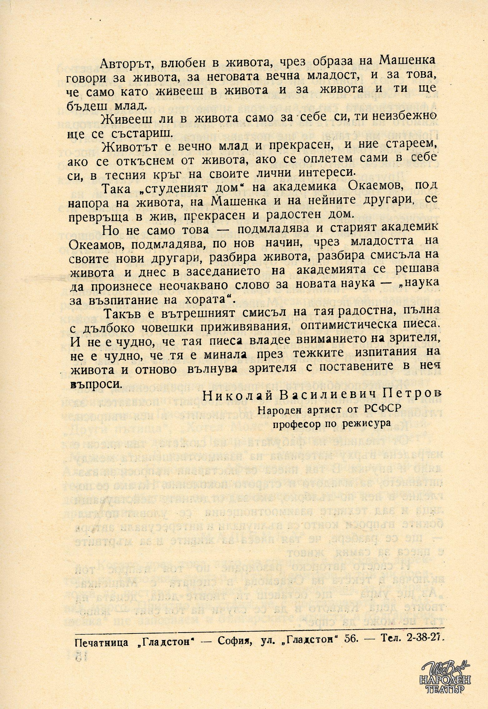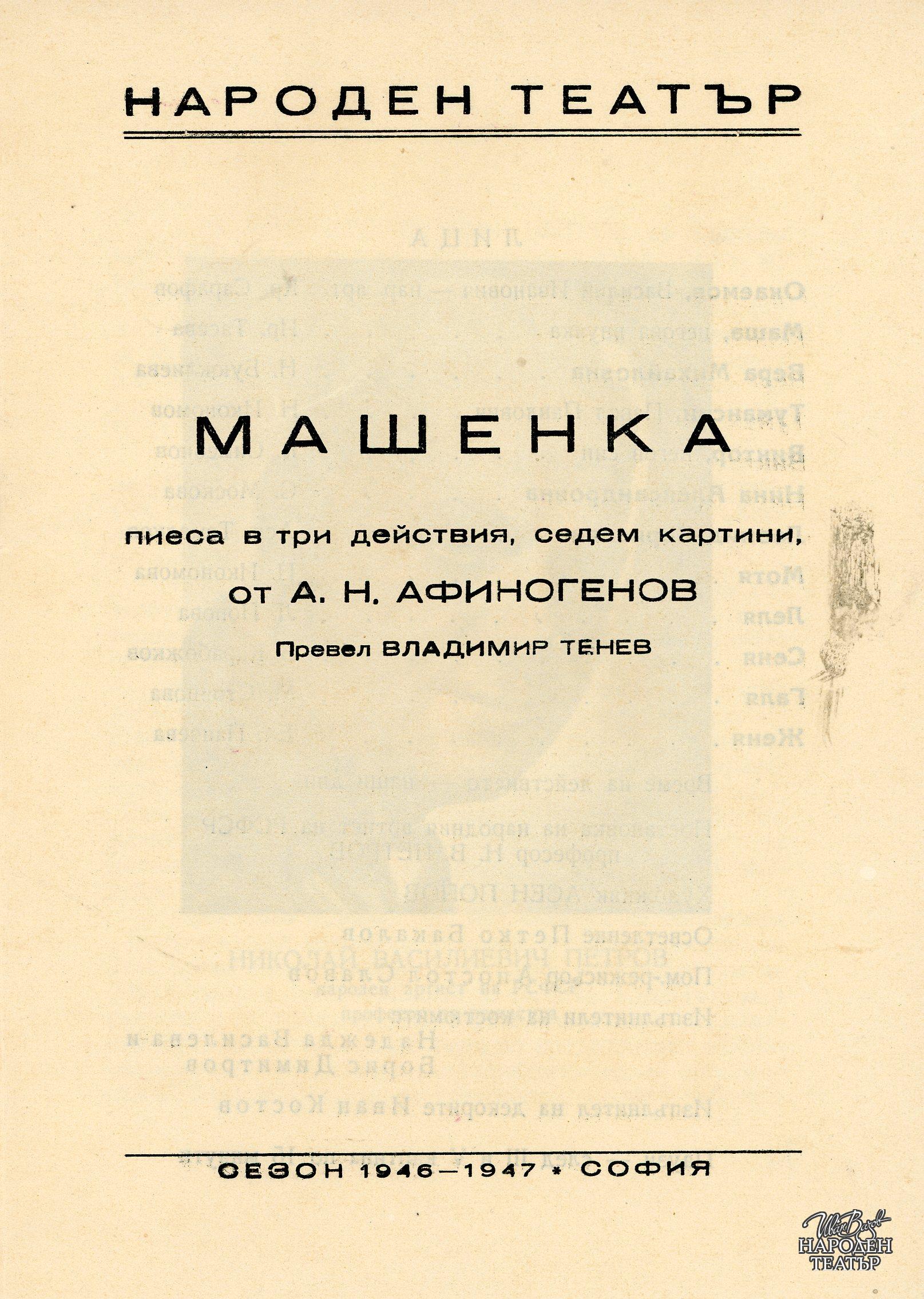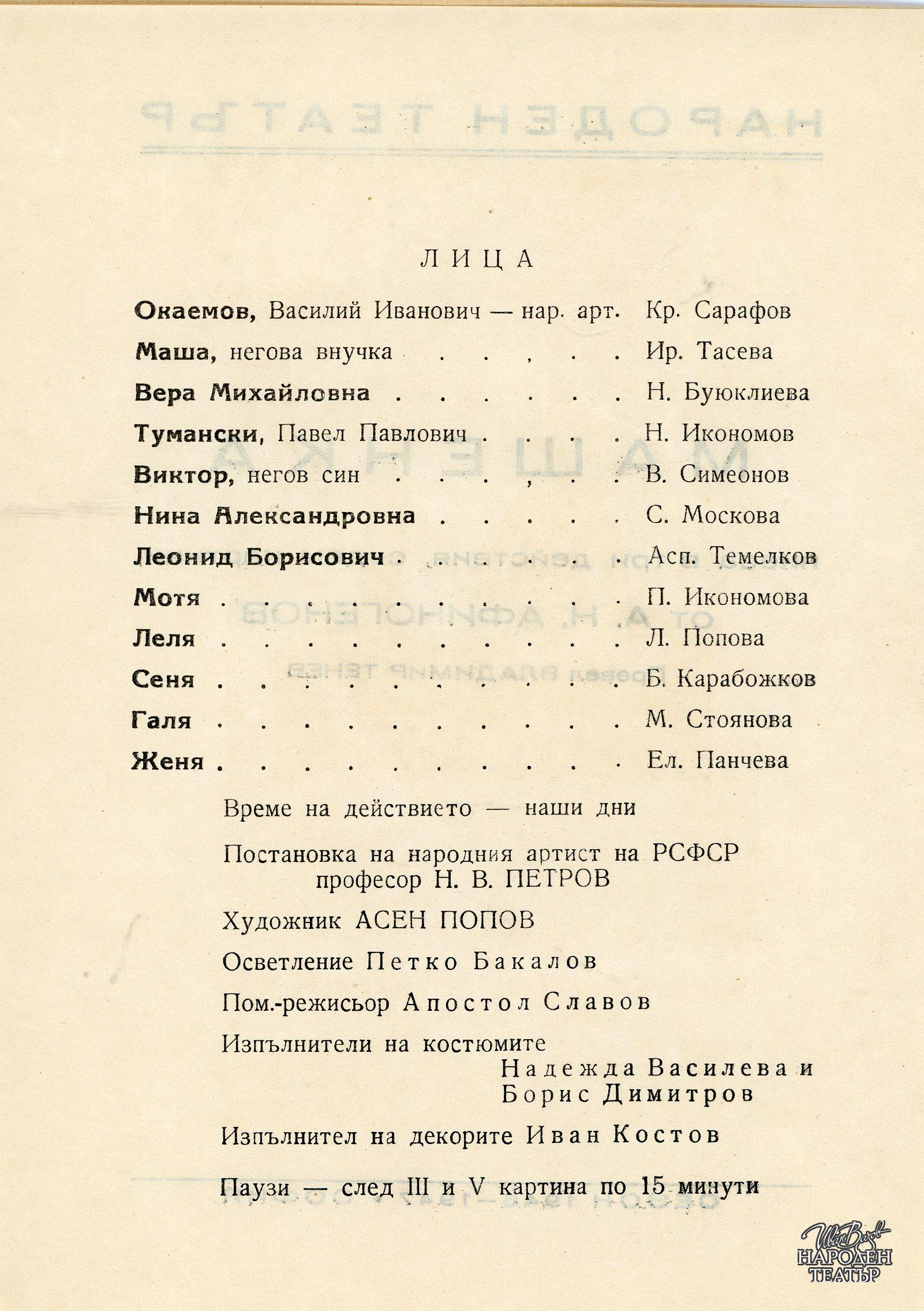 | Институция | Народен театър „Иван Вазов“, гр. София, България |
