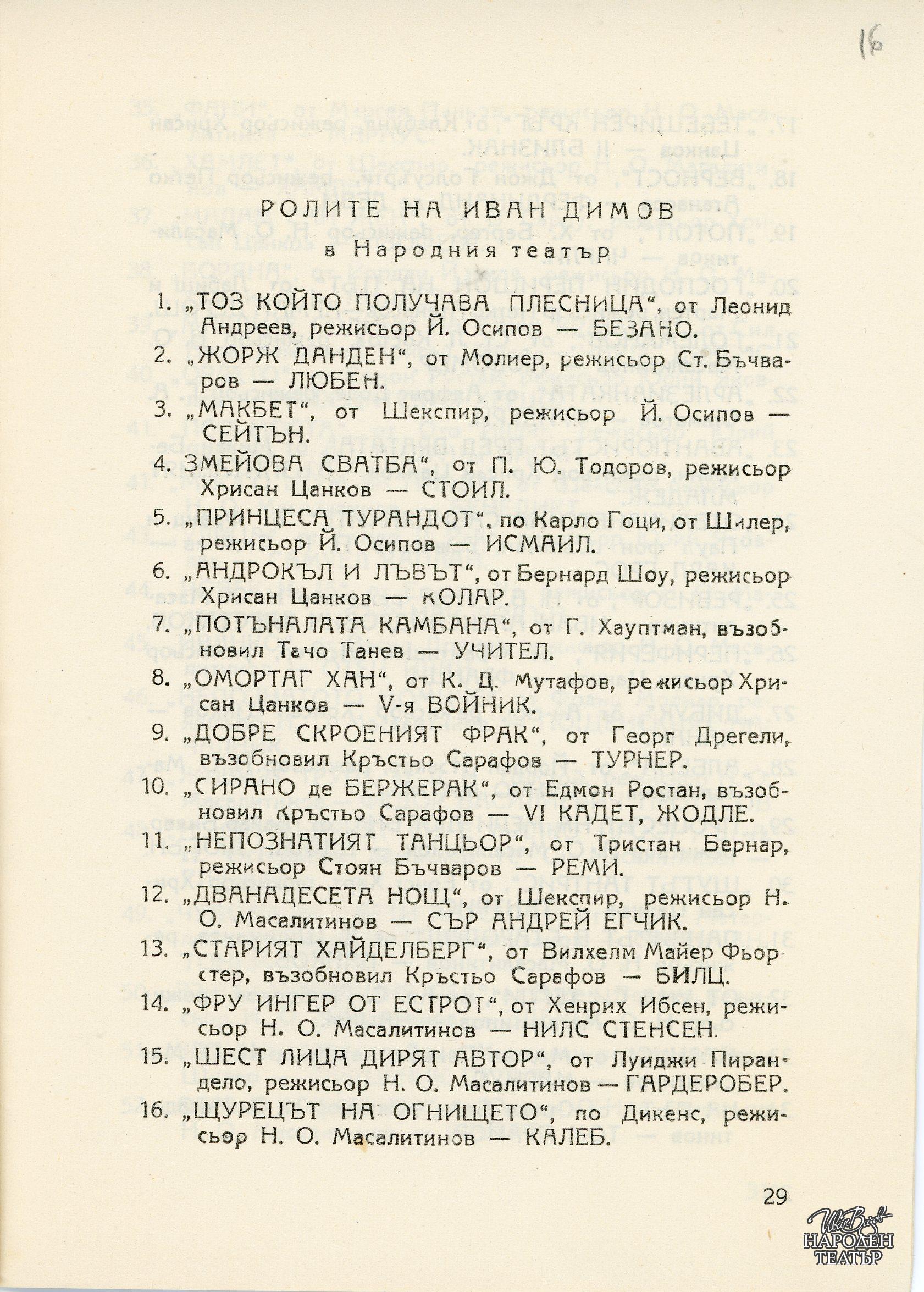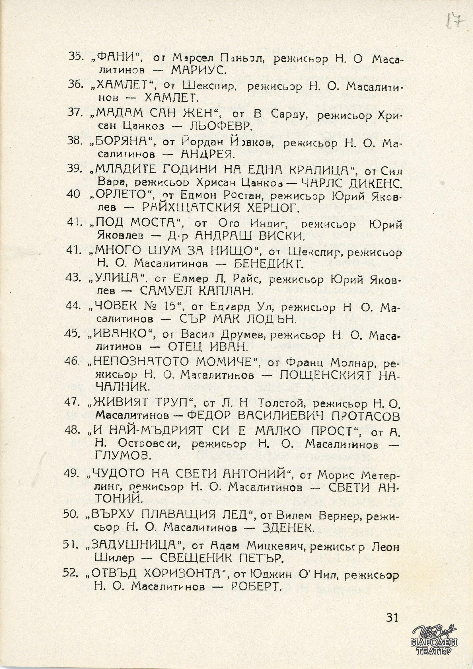 | Институция | Народен театър „Иван Вазов“, гр. София, България |