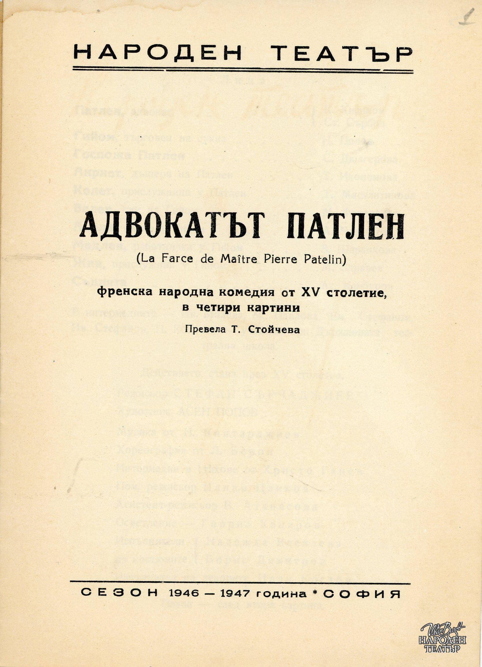 | Институция | Народен театър „Иван Вазов“, гр. София, България |
