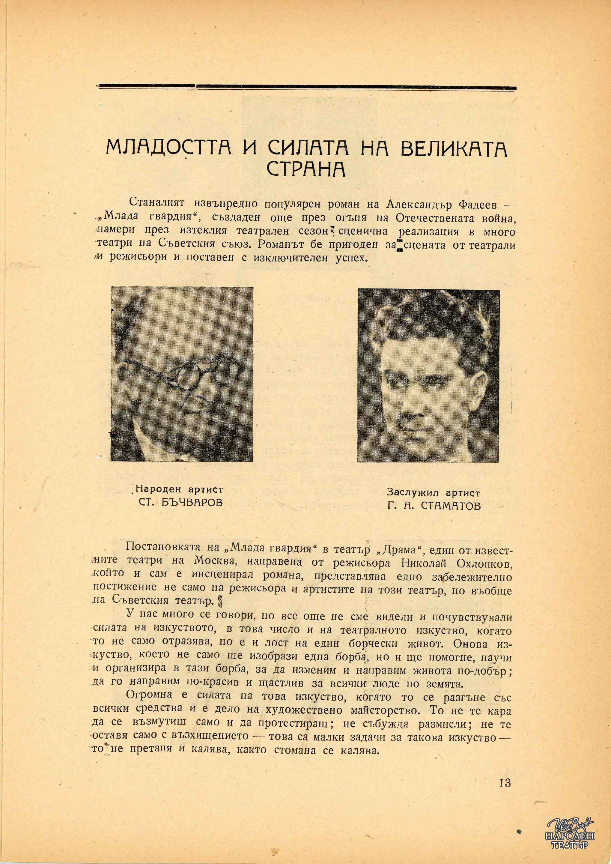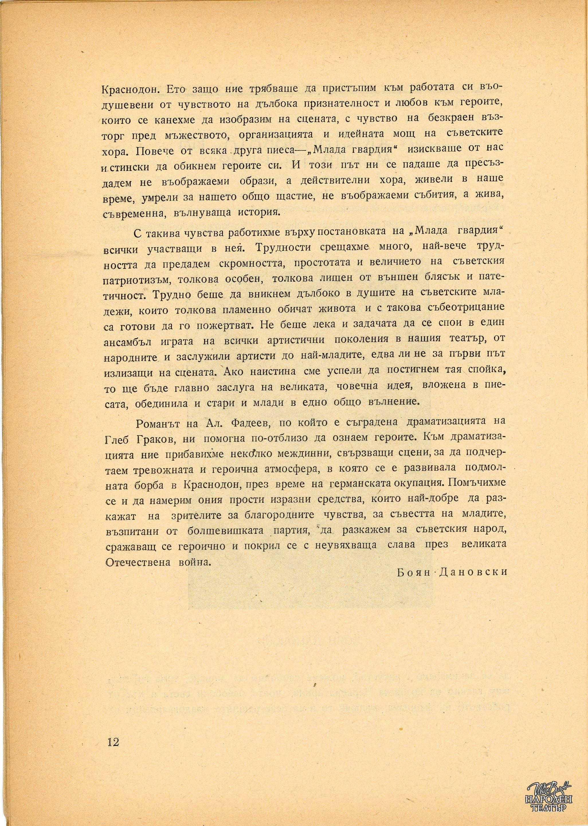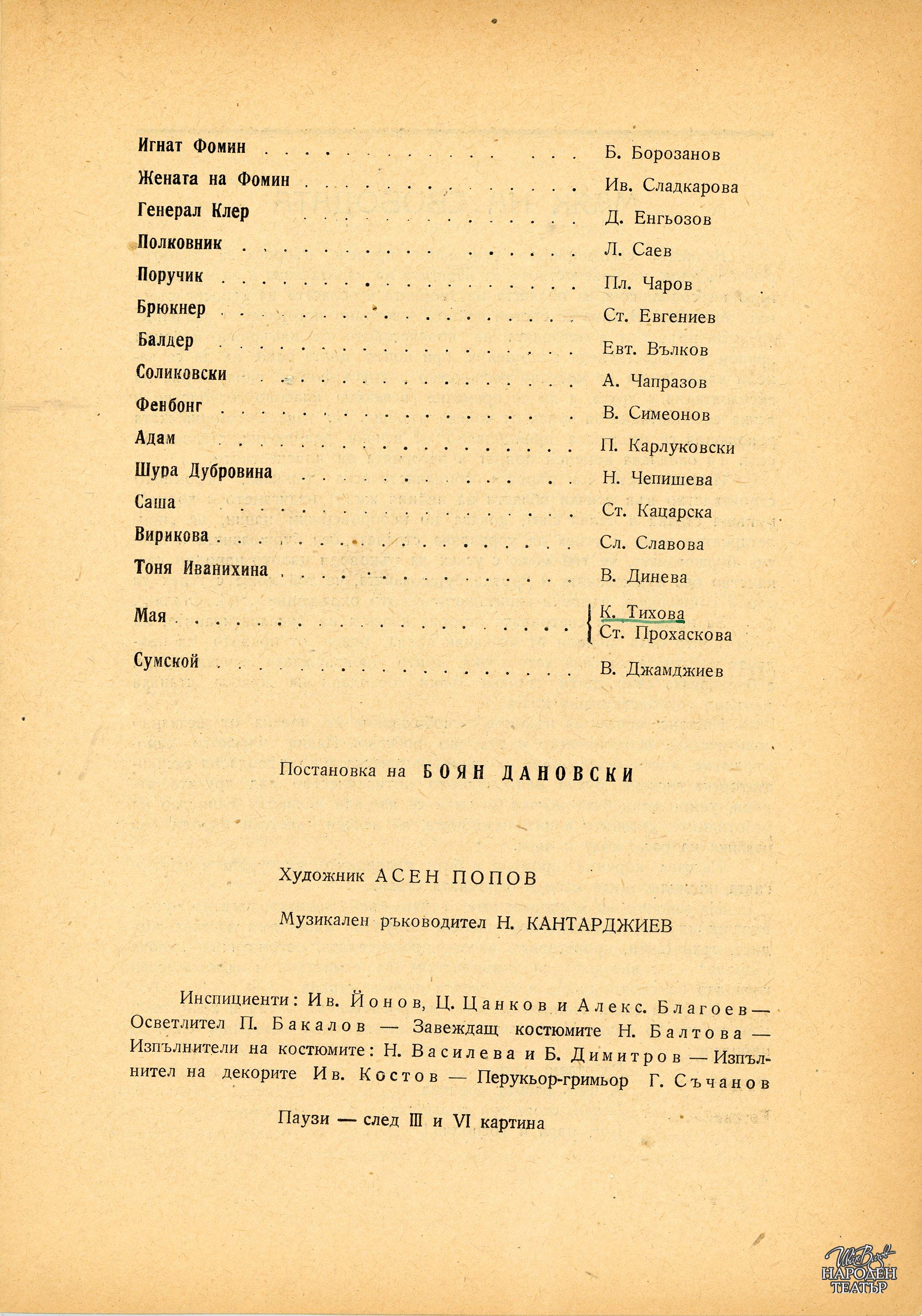 | Институция | Народен театър „Иван Вазов“, гр. София, България |