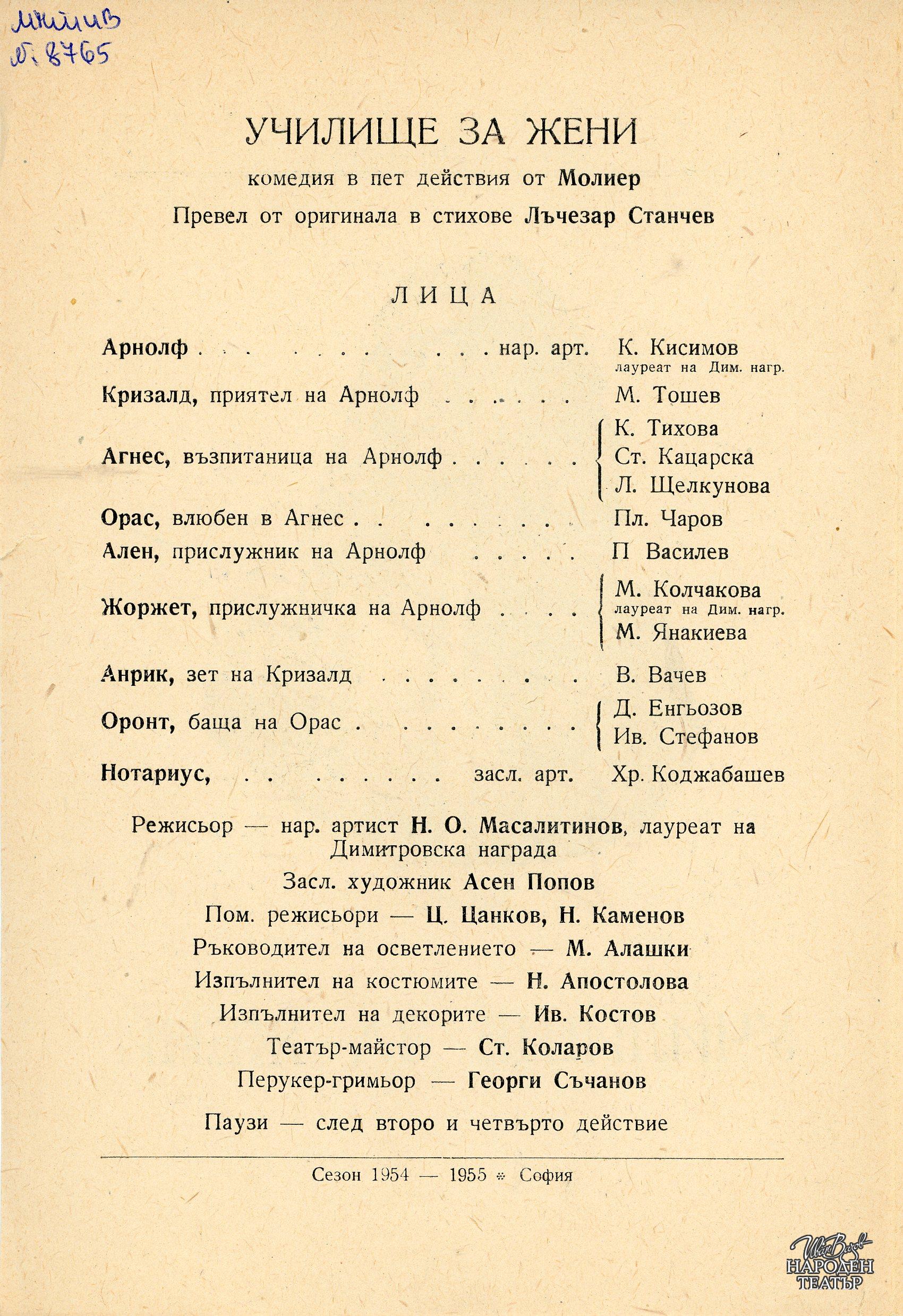 | Институция | Народен театър „Иван Вазов“, гр. София, България |