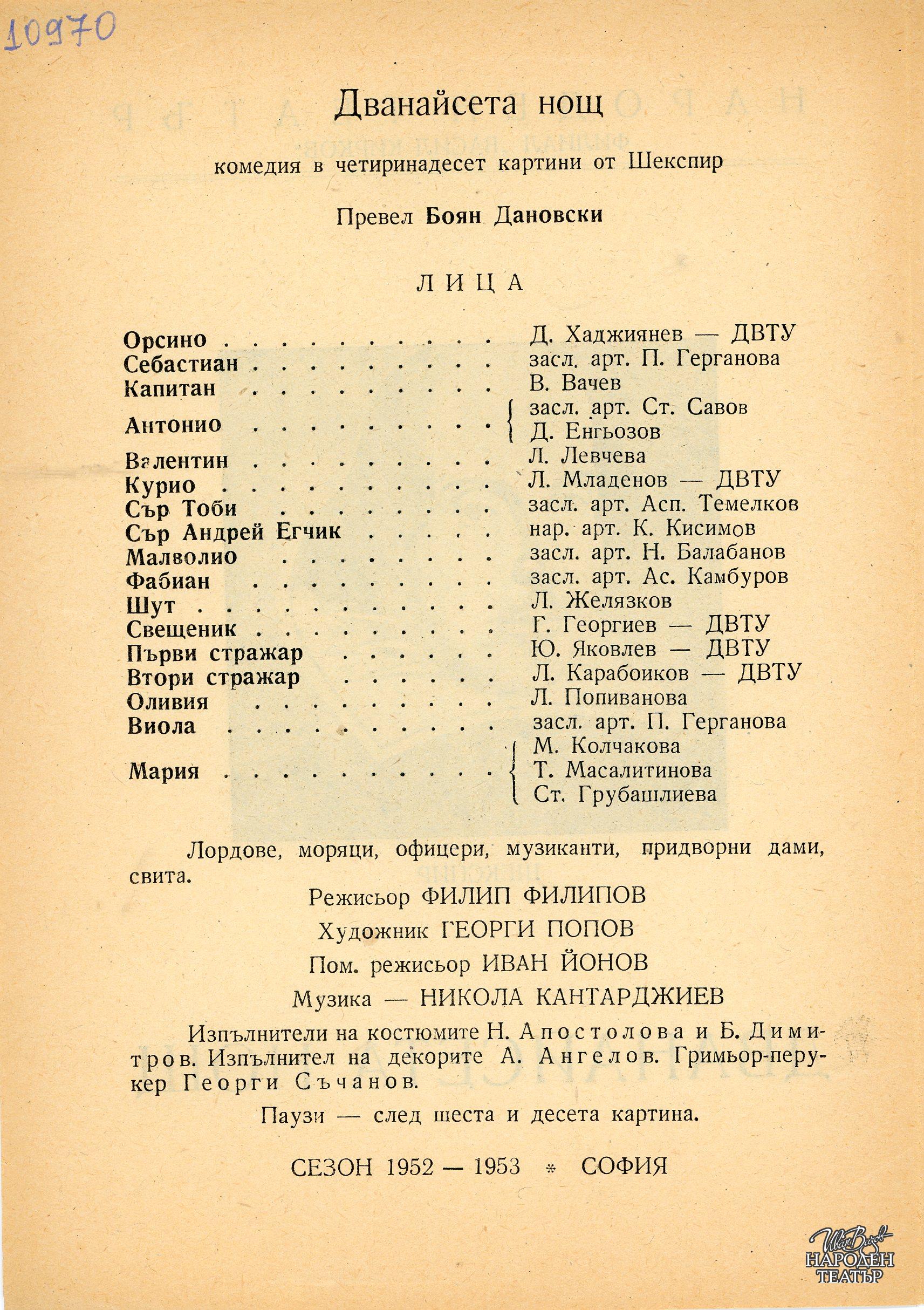 | Институция | Народен театър „Иван Вазов“, гр. София, България |