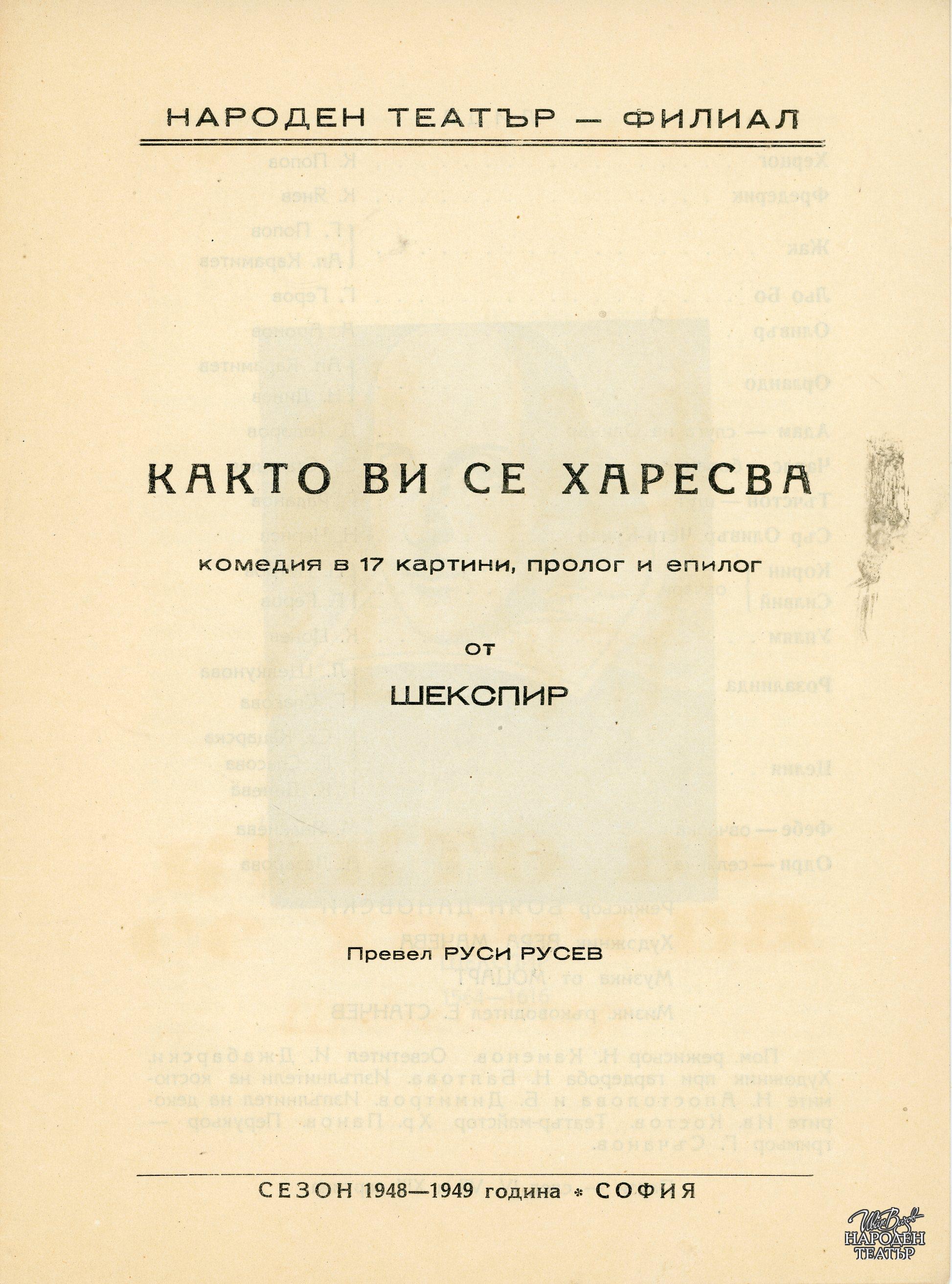 | Институция | Народен театър „Иван Вазов“, гр. София, България |