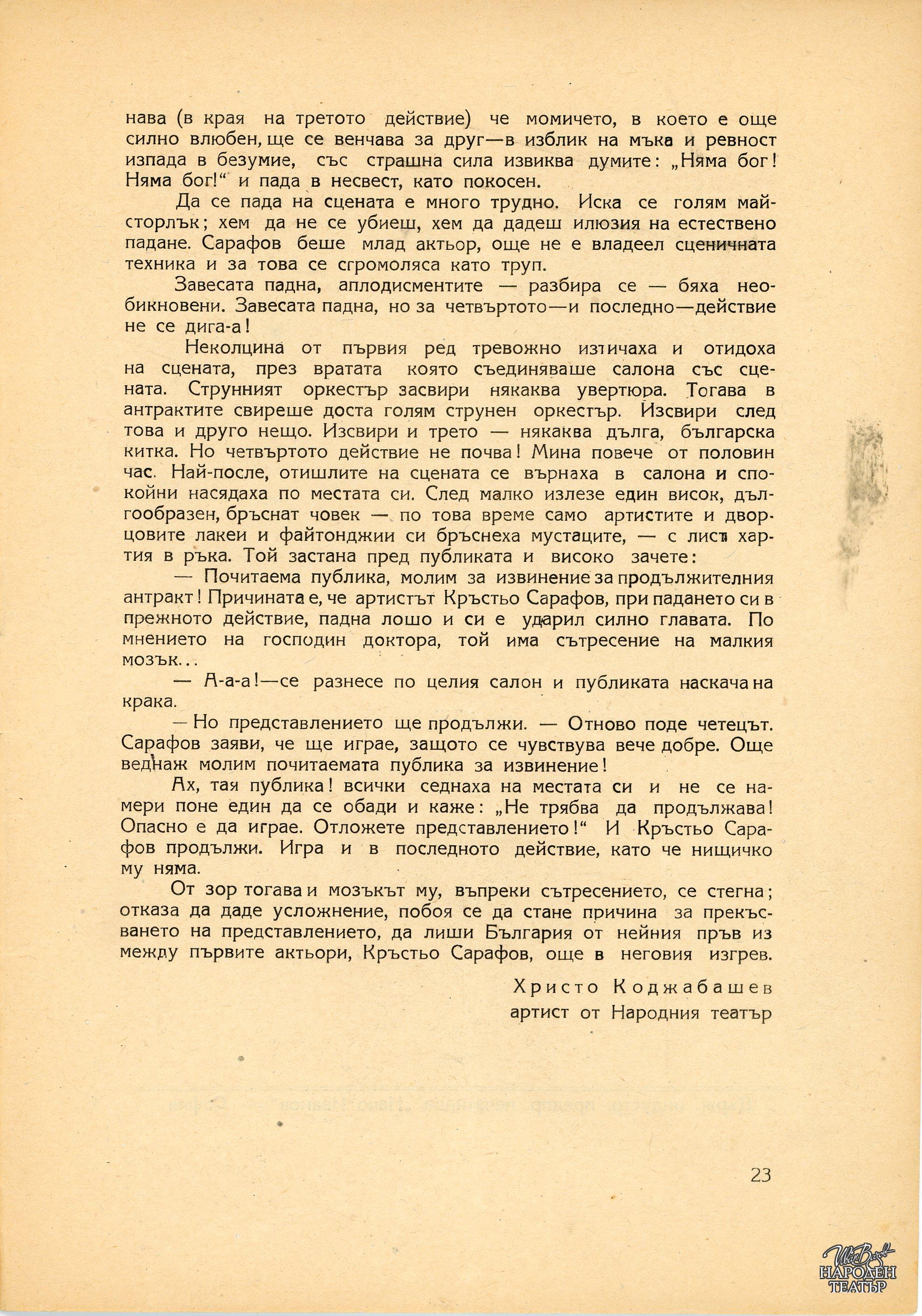 | Институция | Народен театър „Иван Вазов“, гр. София, България |