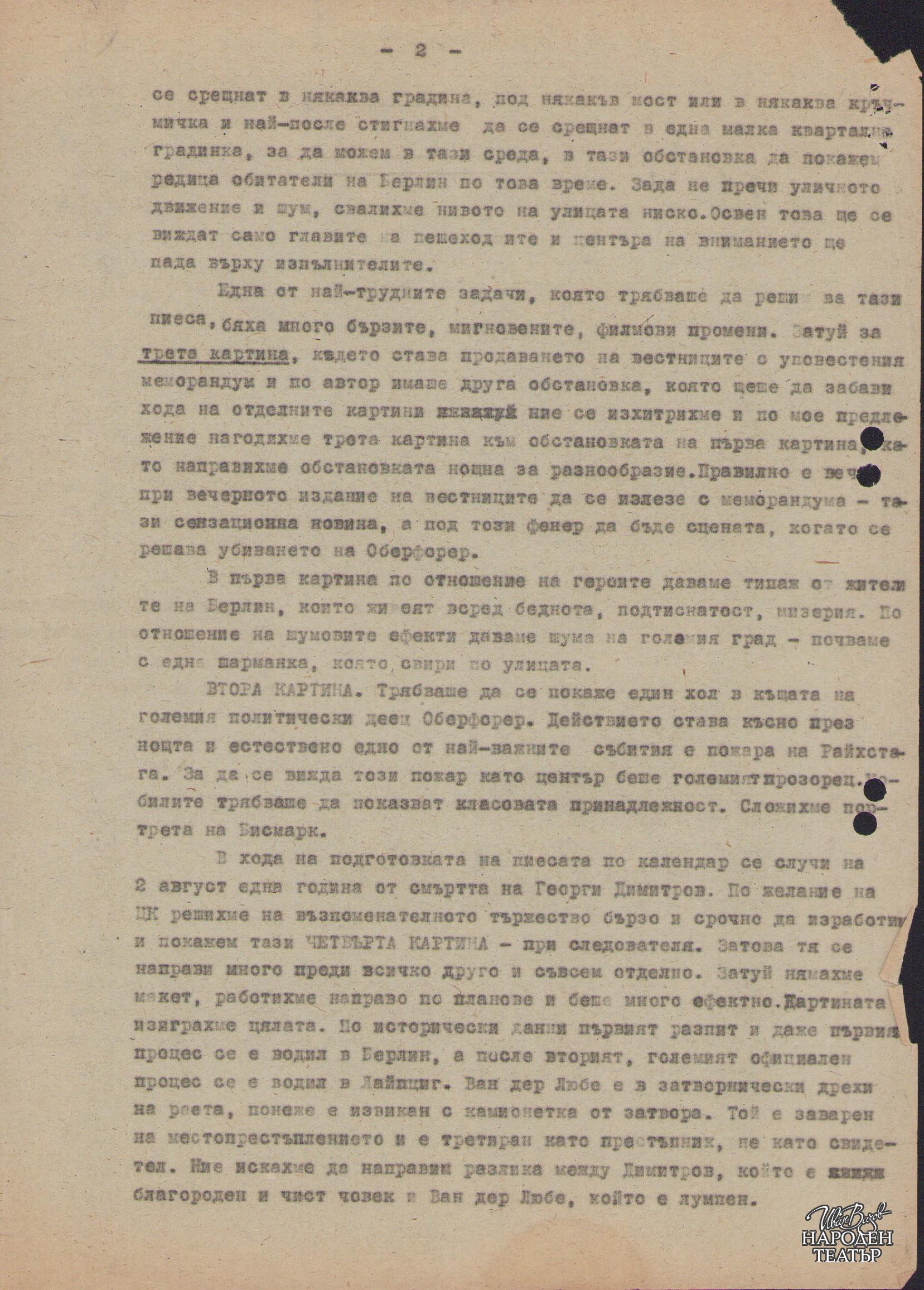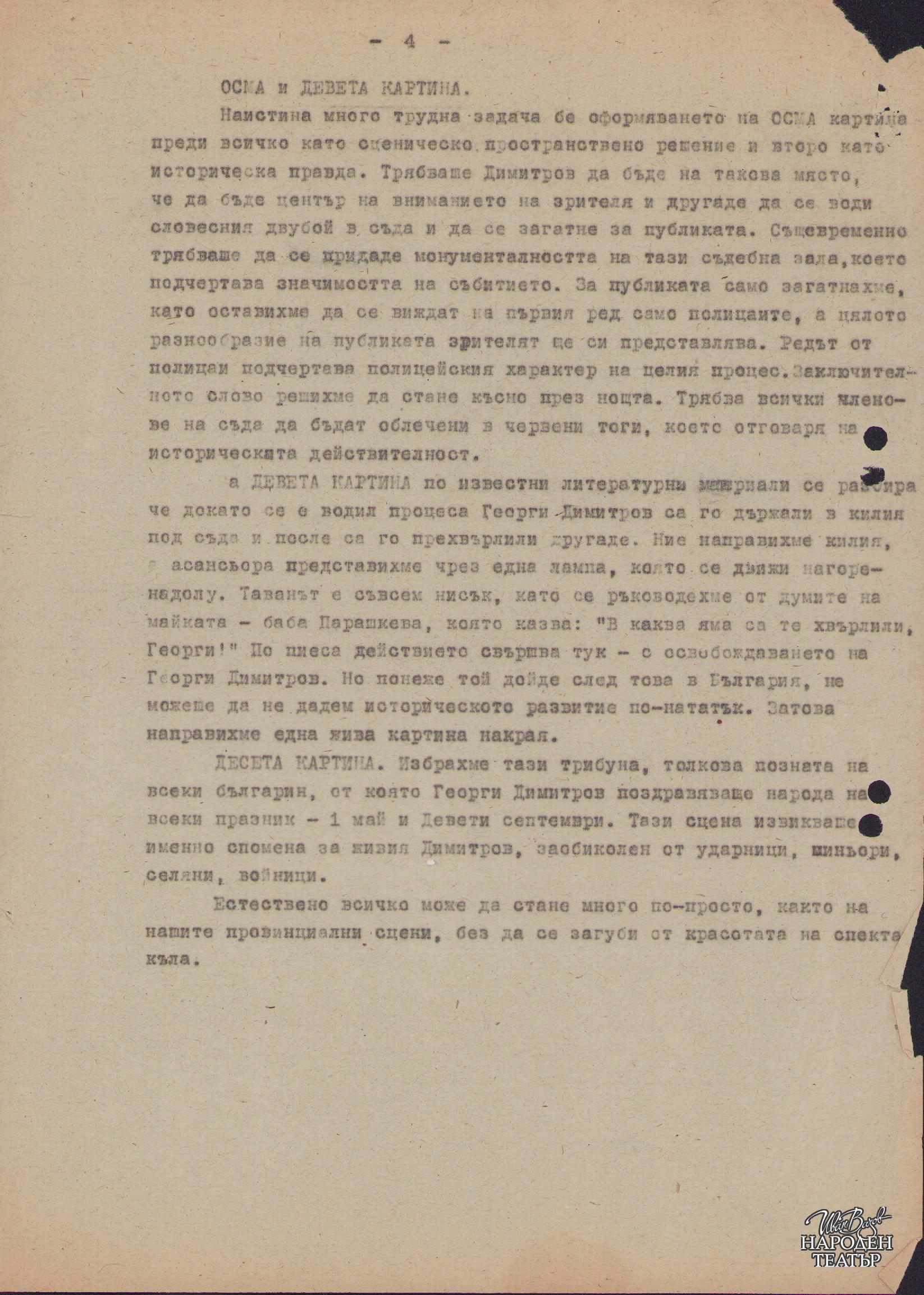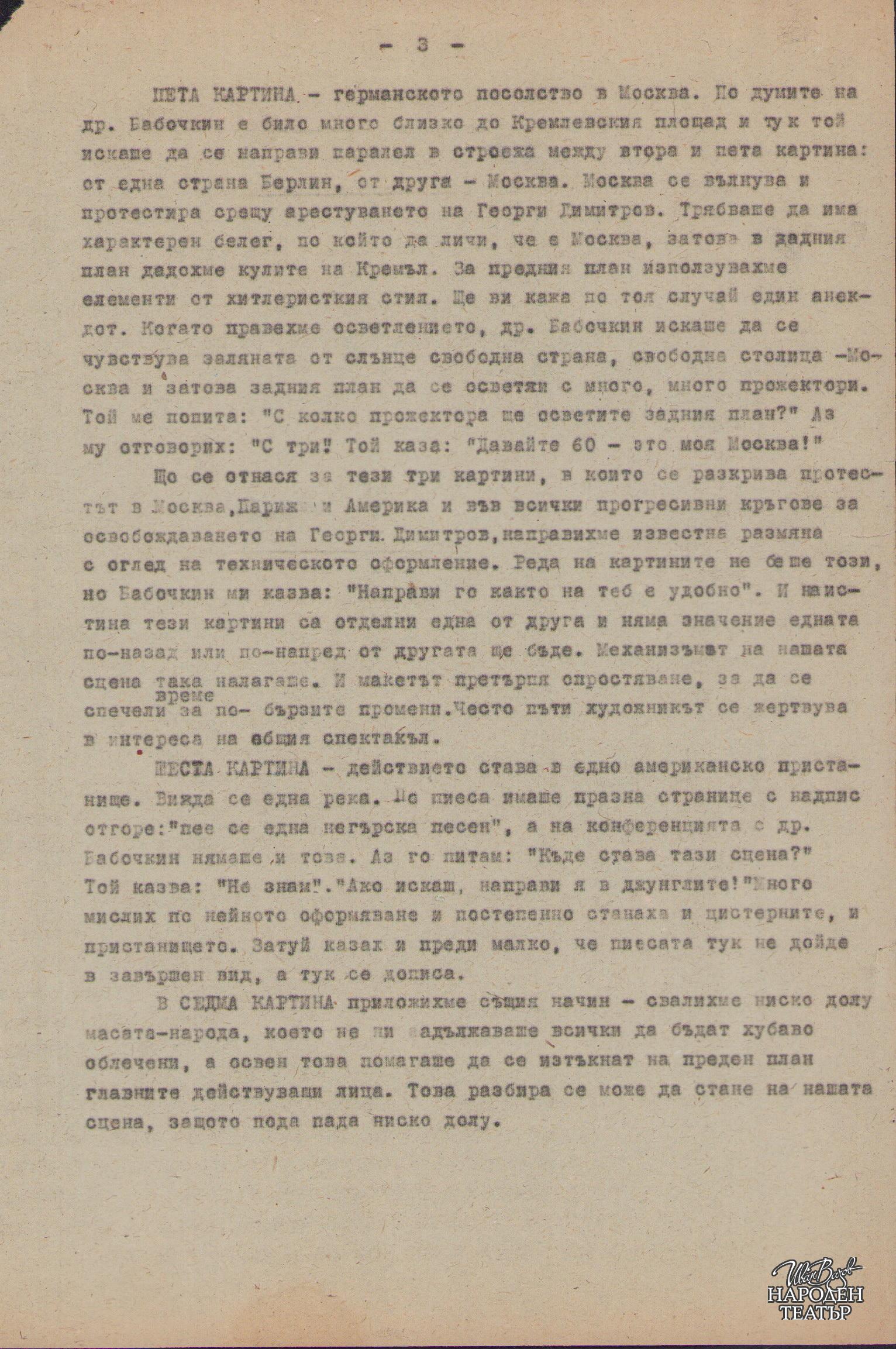 Бележки на Георги Каракашев за художественото оформление на пиесата "Лайпциг-1933". |