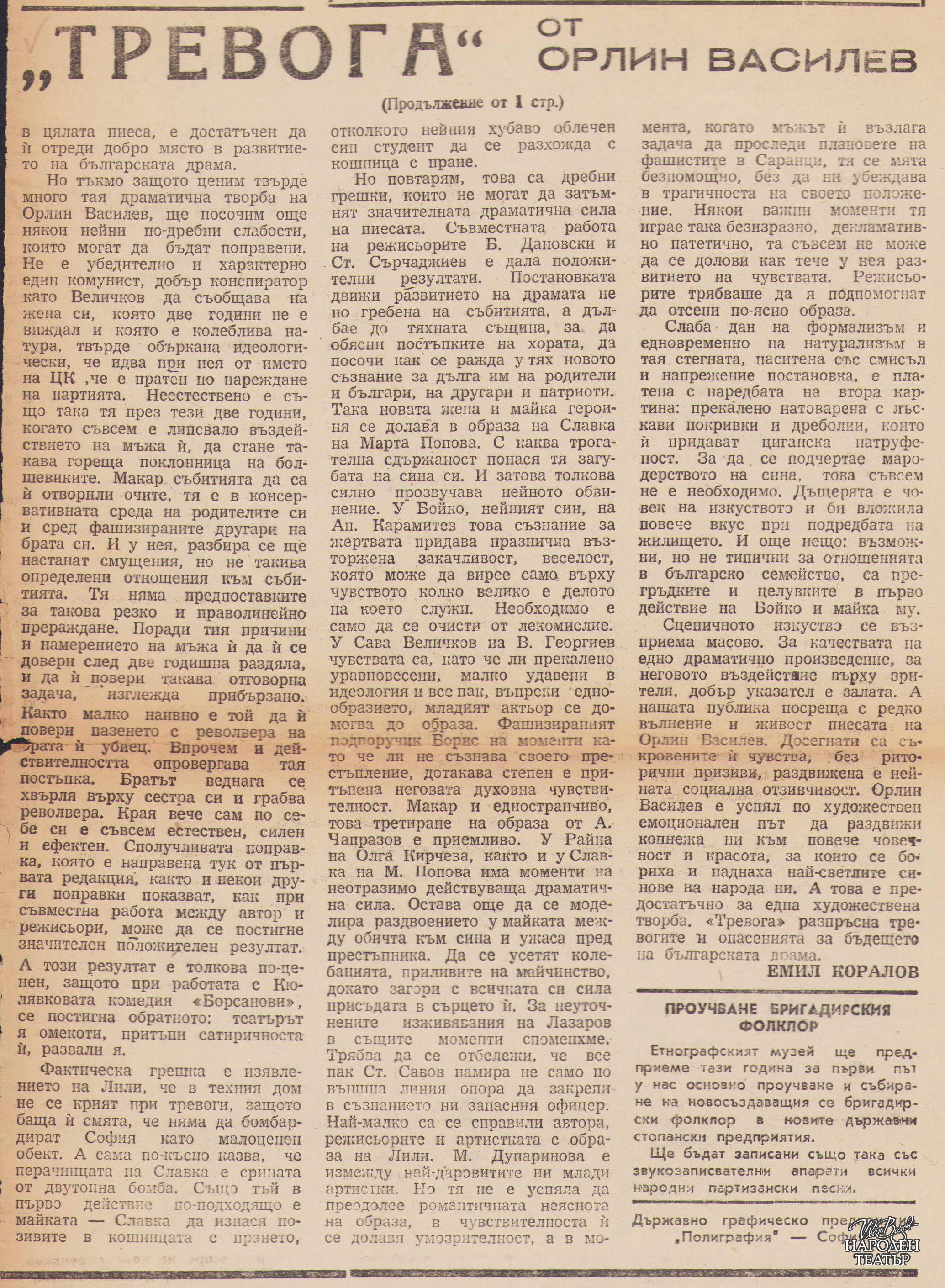 в. Литературен фронт, IV, бр. 27, 20.03.1948, с. 1-2 |