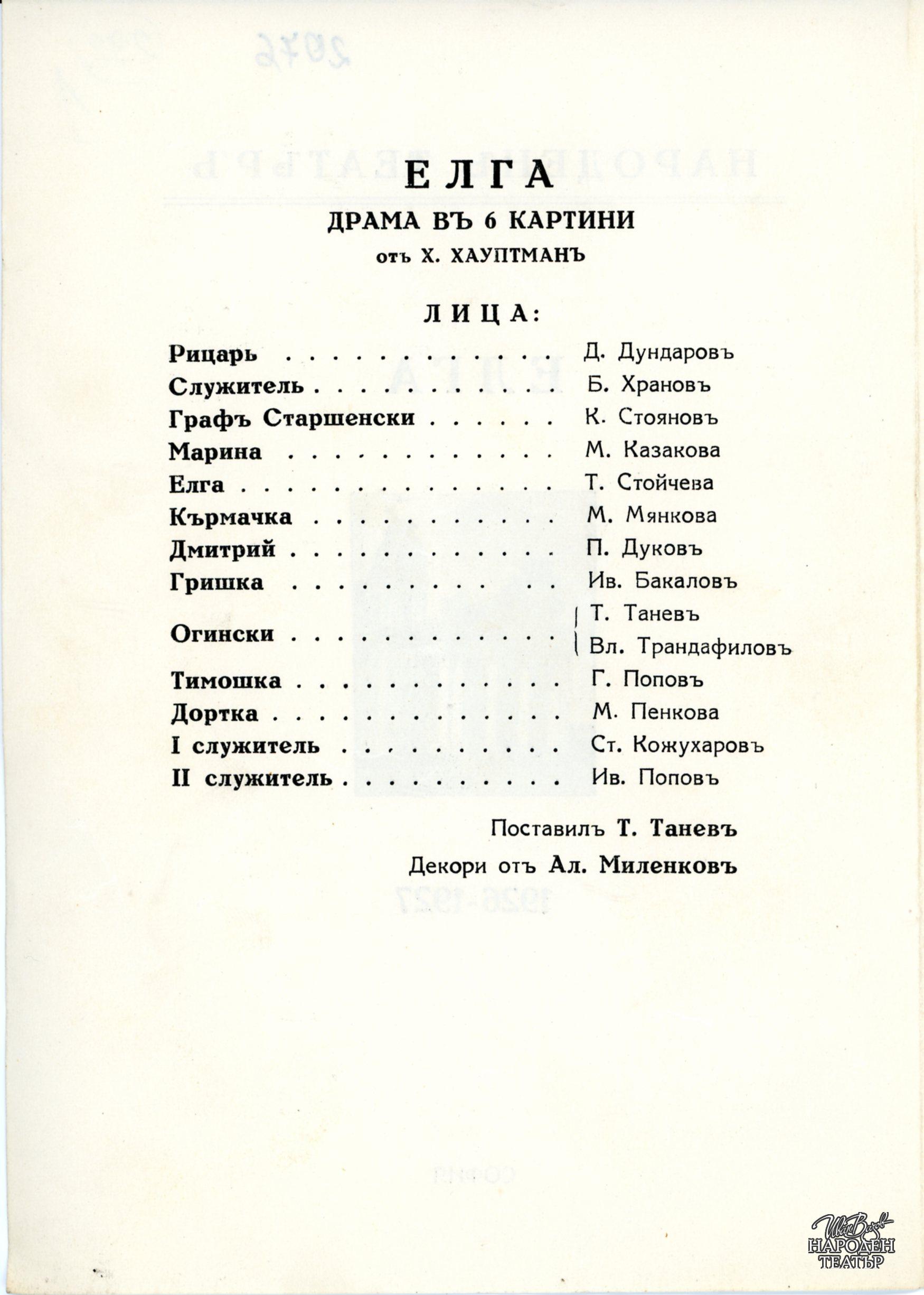 | Институция | Народен театър „Иван Вазов“, гр. София, България |