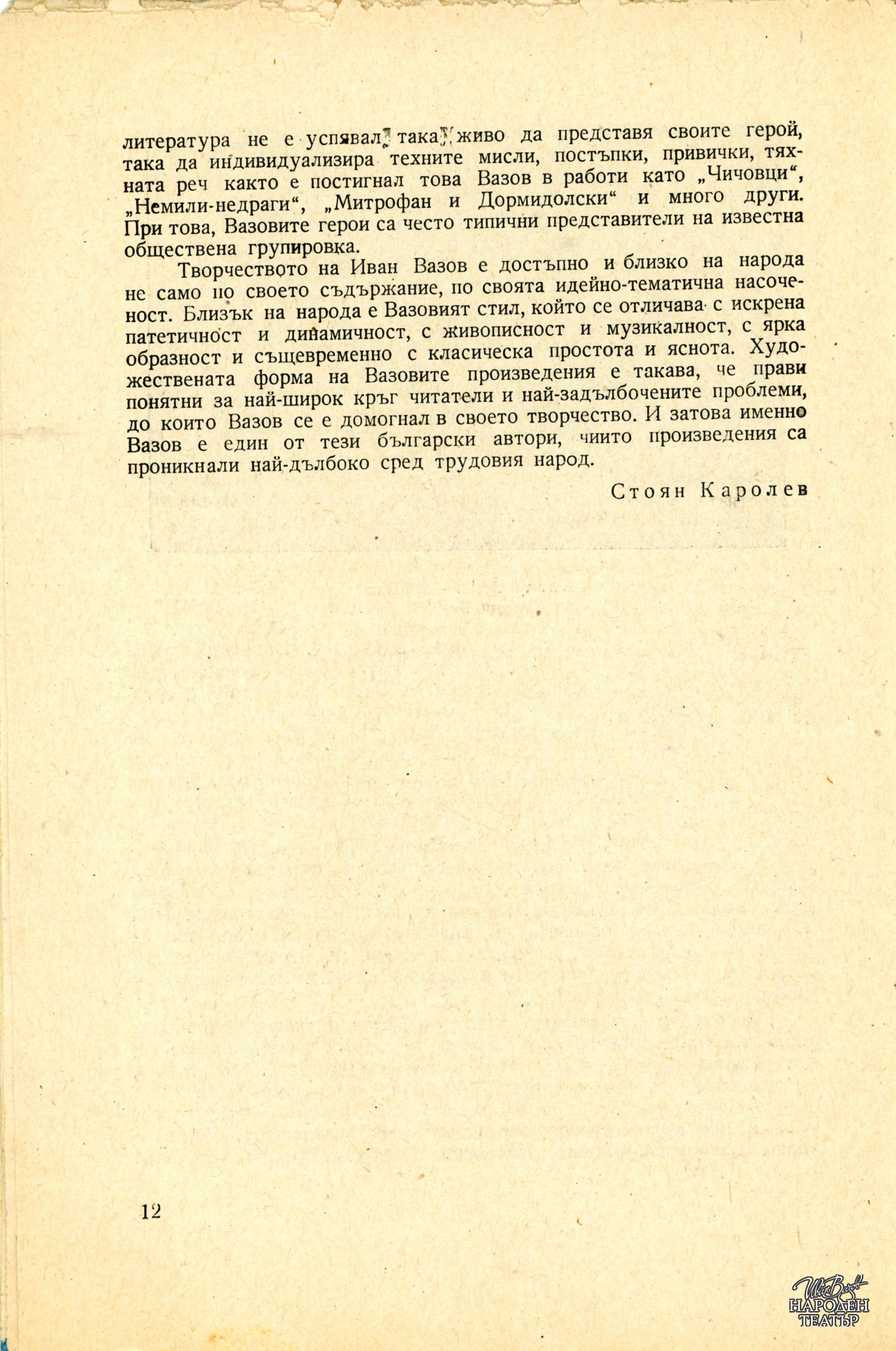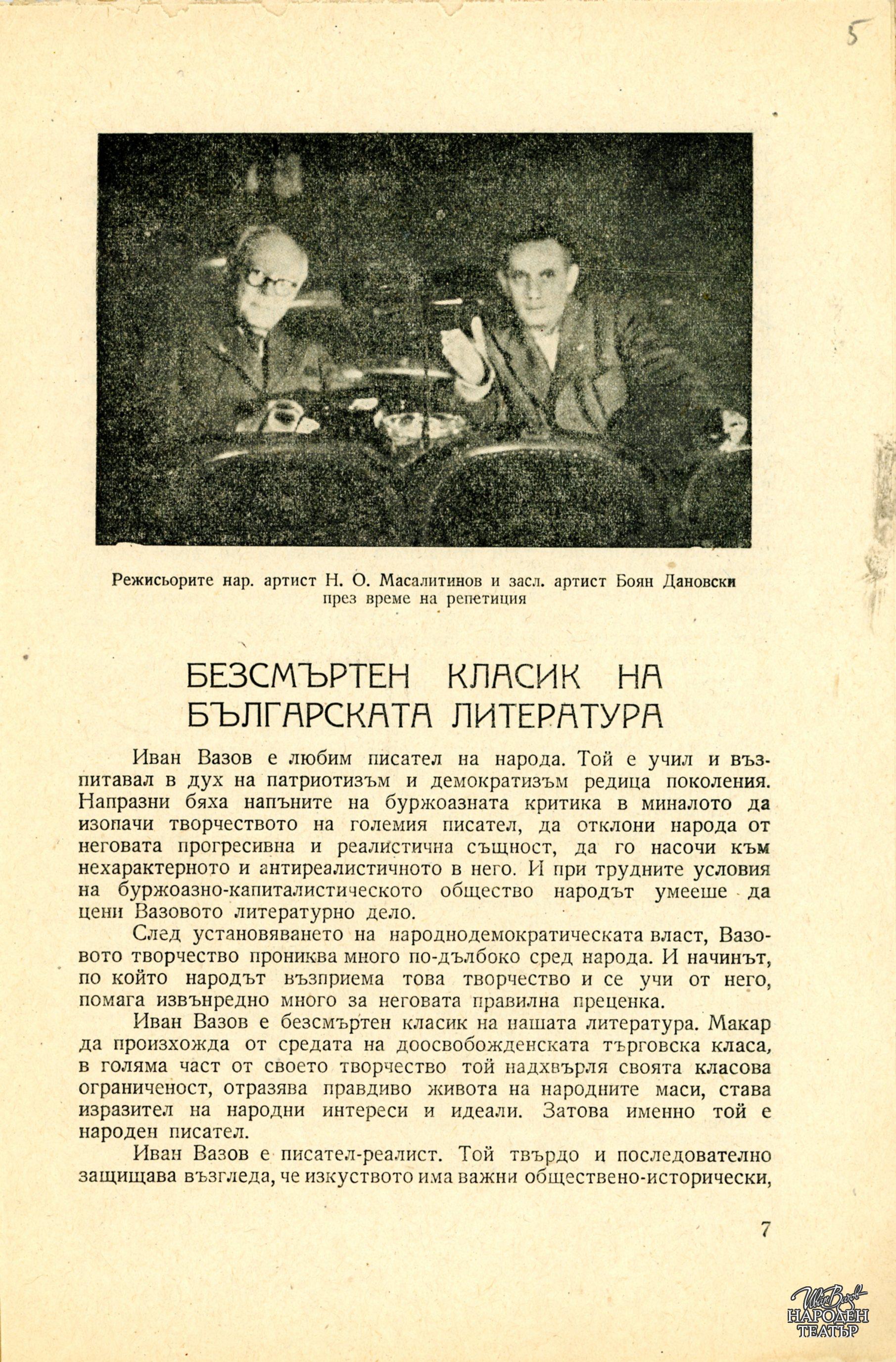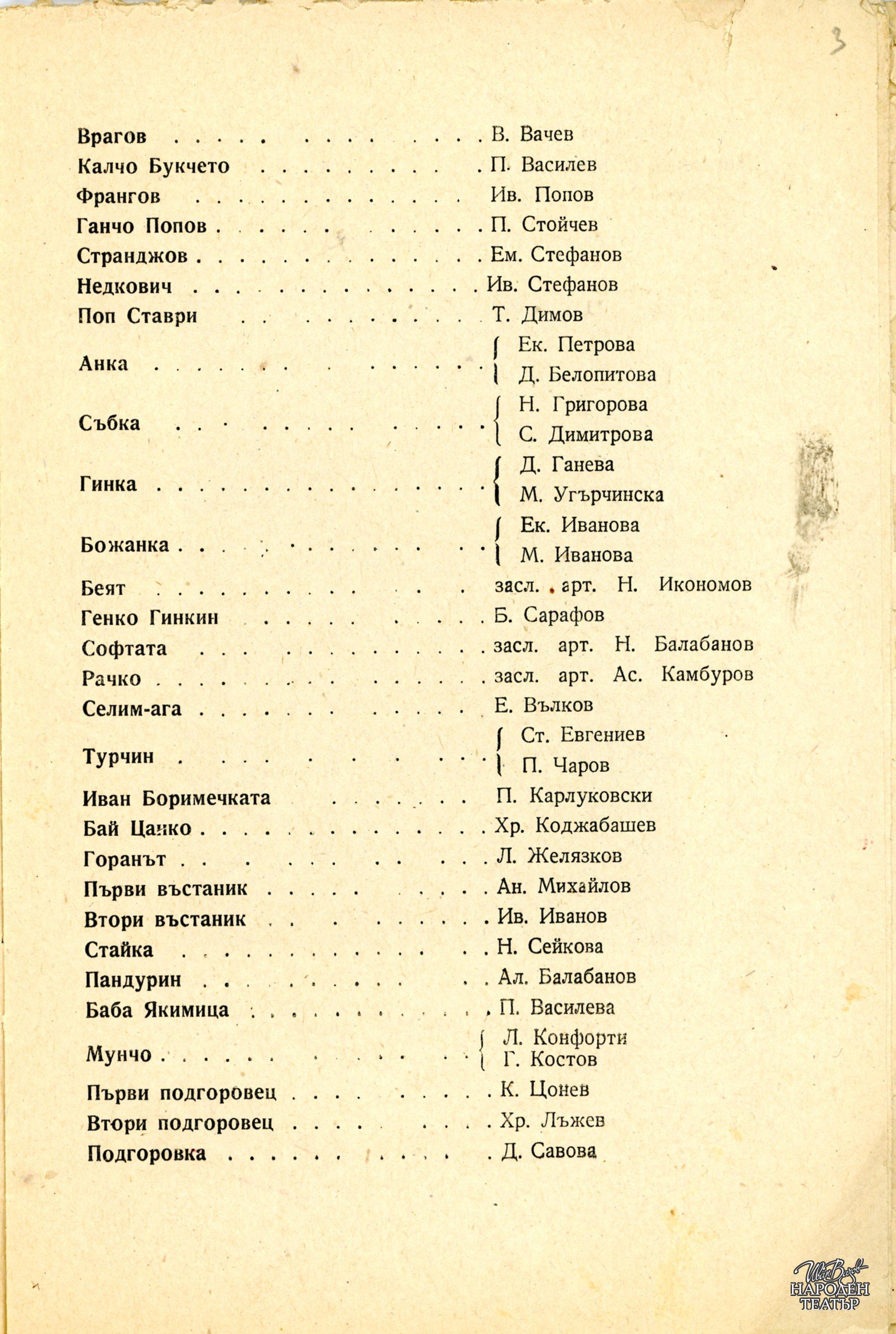 | Институция | Народен театър „Иван Вазов“, гр. София, България |