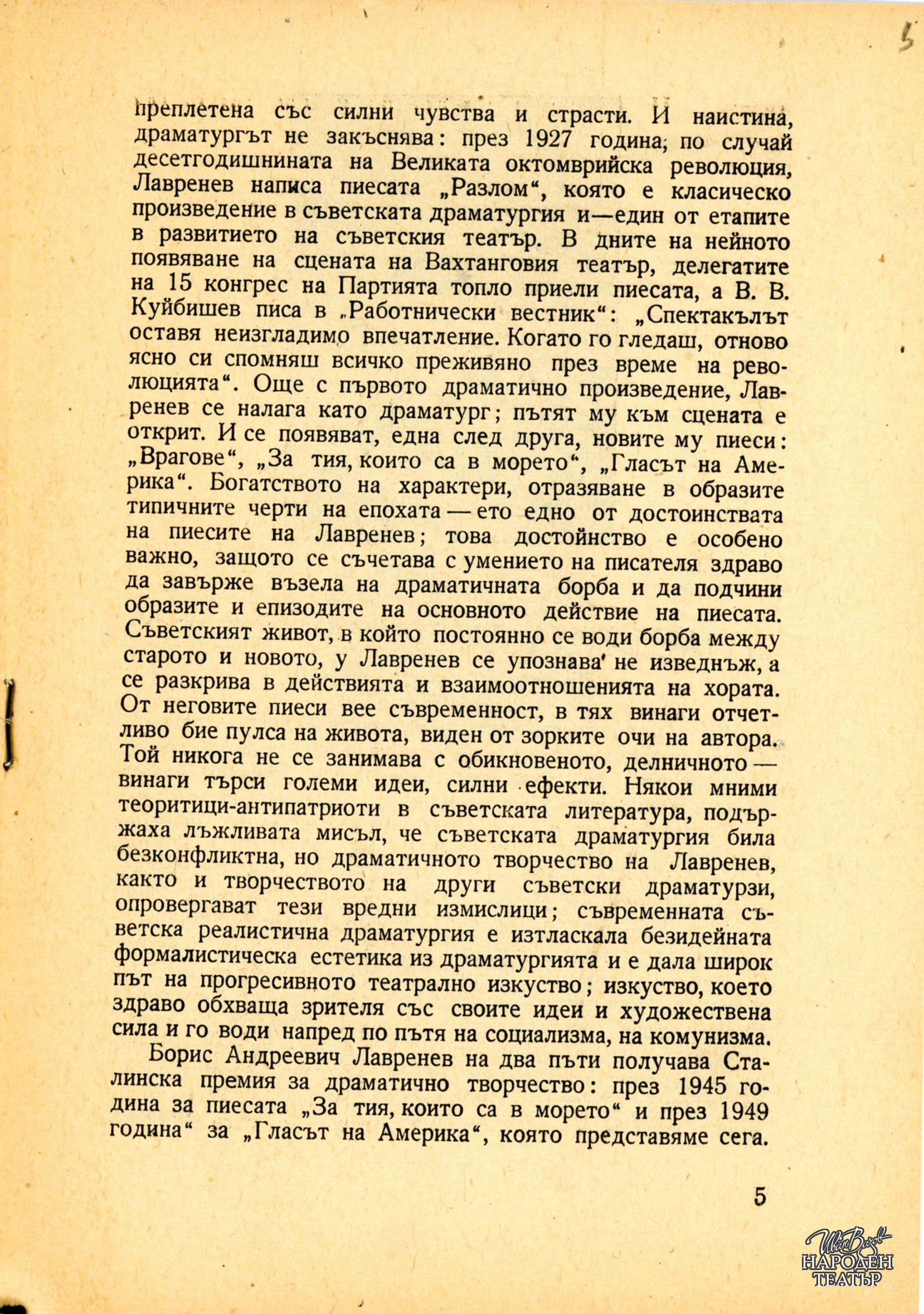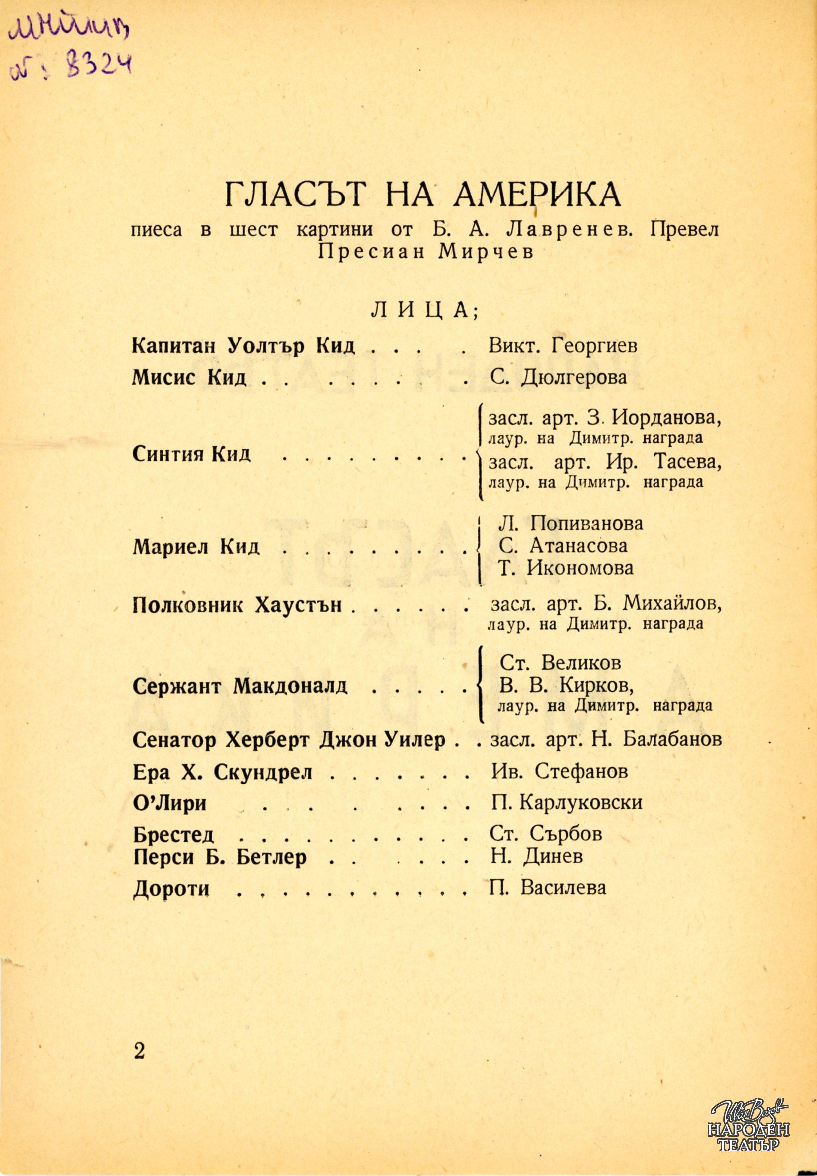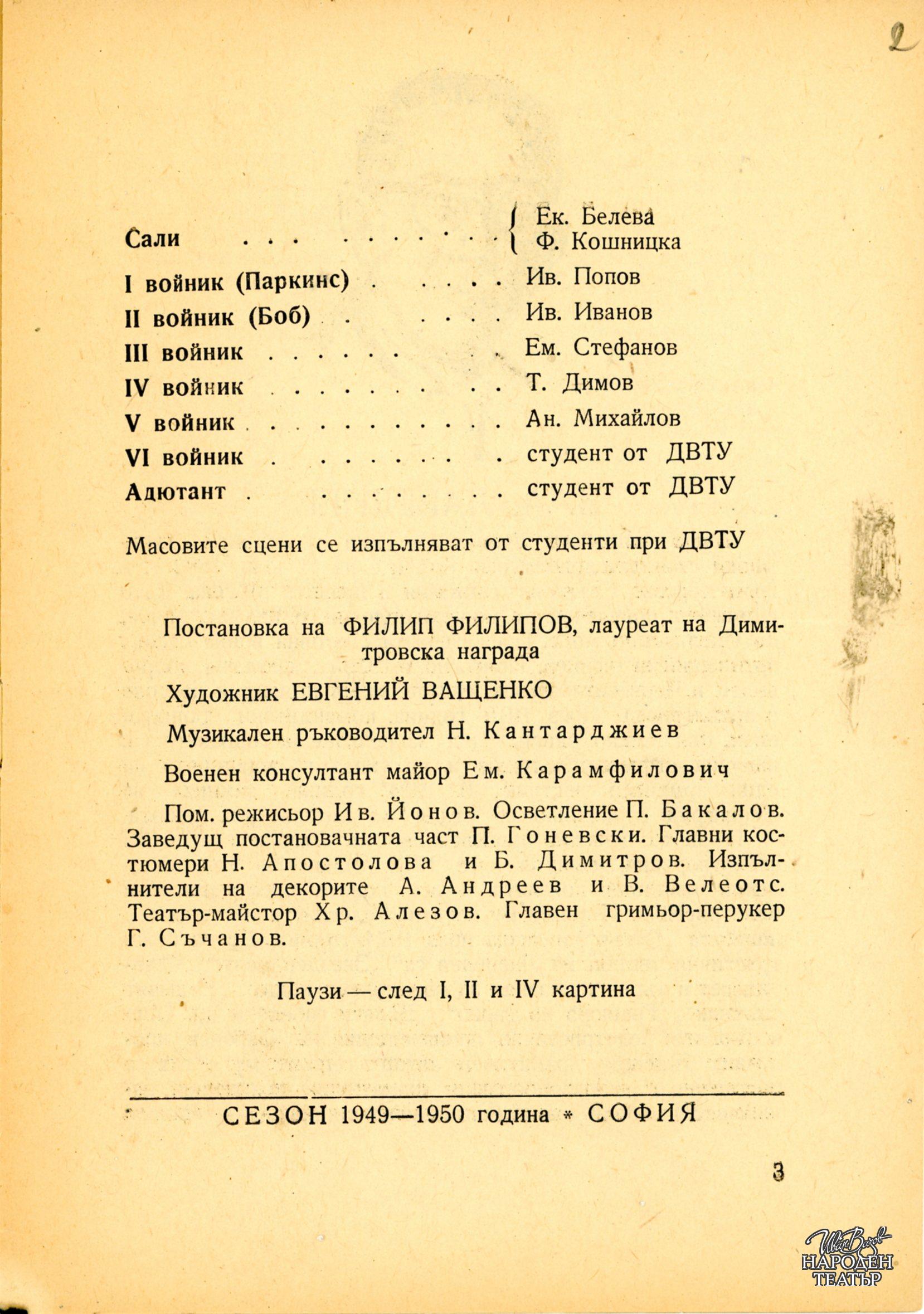 | Институция | Народен театър „Иван Вазов“, гр. София, България |